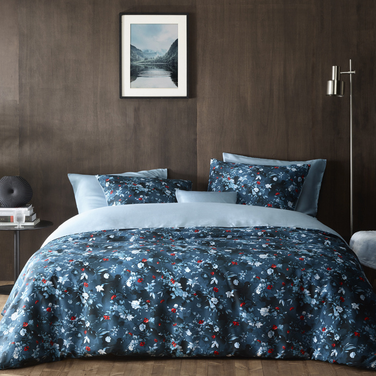 Dieser Bettbezug aus der Satin-Kollektion von De Witte Lietaer verleiht Ihrem Schlafzimmer mit seinem dezenten Blumenmuster auf blauem Grund einen stilvollen, modernen Look und schafft so eine verspielte und zugleich beruhigende Atmosphäre . Die schlichte Rückseite und die passenden Kissenbezüge sorgen für Ausgewogenheit und Eleganz.