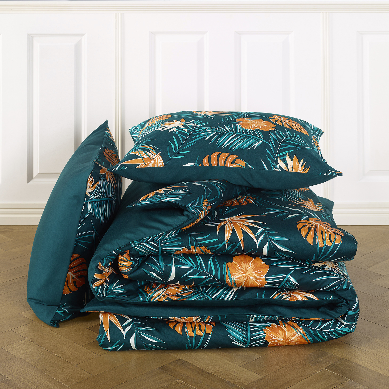 De Witte Lietaer Bettbezug Baumwollsatin, Bird of Paradise Deep Petrol.
