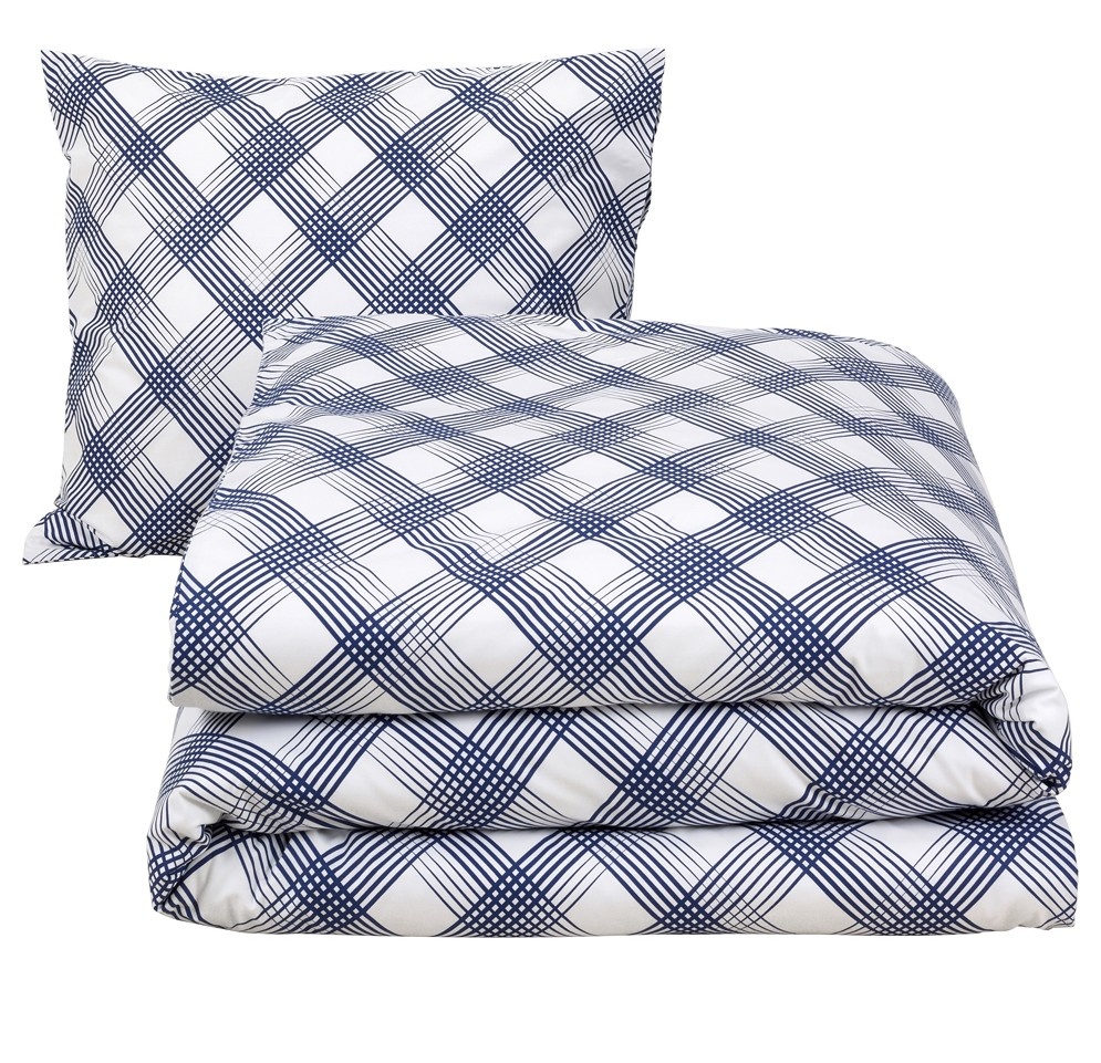 Dieser stilvolle Einzelbettbezug aus der Odil-Kollektion von Moodit verleiht Ihrem Schlafzimmer im Handumdrehen Wärme und Charakter. Das Design besticht durch ein verspieltes Rautenmuster in einem wunderschönen Blauton auf strahlend weißem Grund und schafft so einen lebendigen und zugleich harmonischen Look . Der passende Kissenbezug ergänzt das Design perfekt und rundet das Gesamtbild ab.