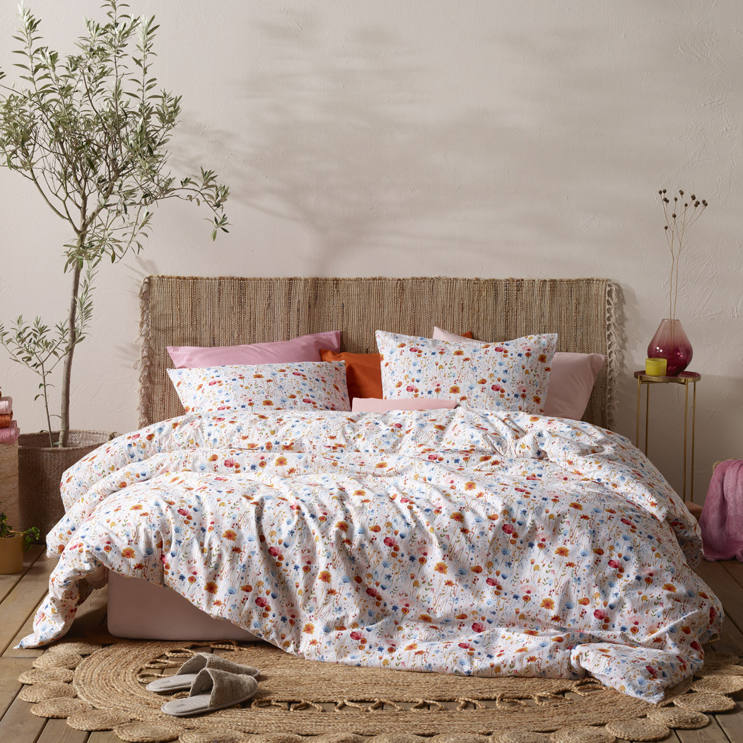 Dieser stilvolle Doppelbettbezug aus der Odil-Kollektion von Moodit verleiht Ihrem Schlafzimmer sofort Wärme und Charakter. Das Design besticht durch ein verspieltes, farbenfrohes Blumenmuster auf strahlend weißem Grund und schafft so eine lebendige und zugleich harmonische Atmosphäre . Die passenden Kissenbezüge ergänzen das Design perfekt und runden das Ensemble ab.