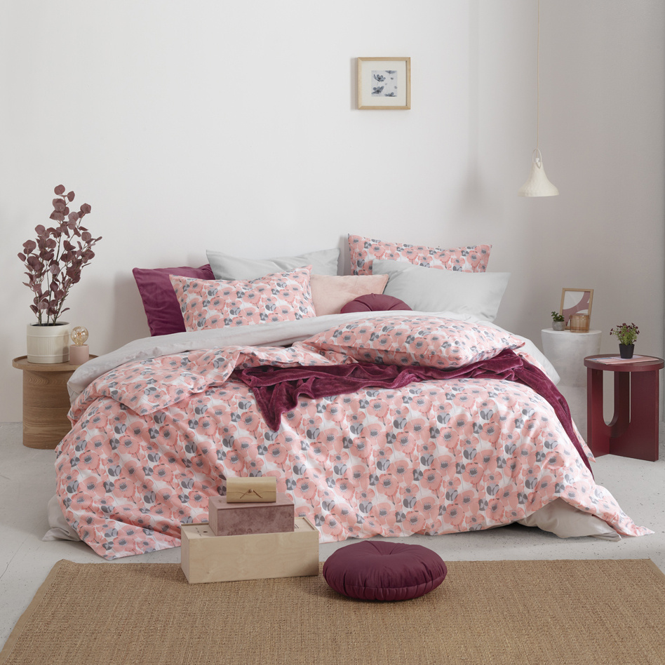 Dieser stilvolle Einzelbettbezug aus der Odil-Kollektion von Moodit verleiht Ihrem Schlafzimmer sofort Wärme und Charakter. Das Design besticht durch ein wunderschönes, rosafarbenes Blumenmuster auf weißem Grund und schafft so eine lebendige und zugleich harmonische Atmosphäre . Der passende Kissenbezug ergänzt das Design perfekt und rundet das Ensemble ab.