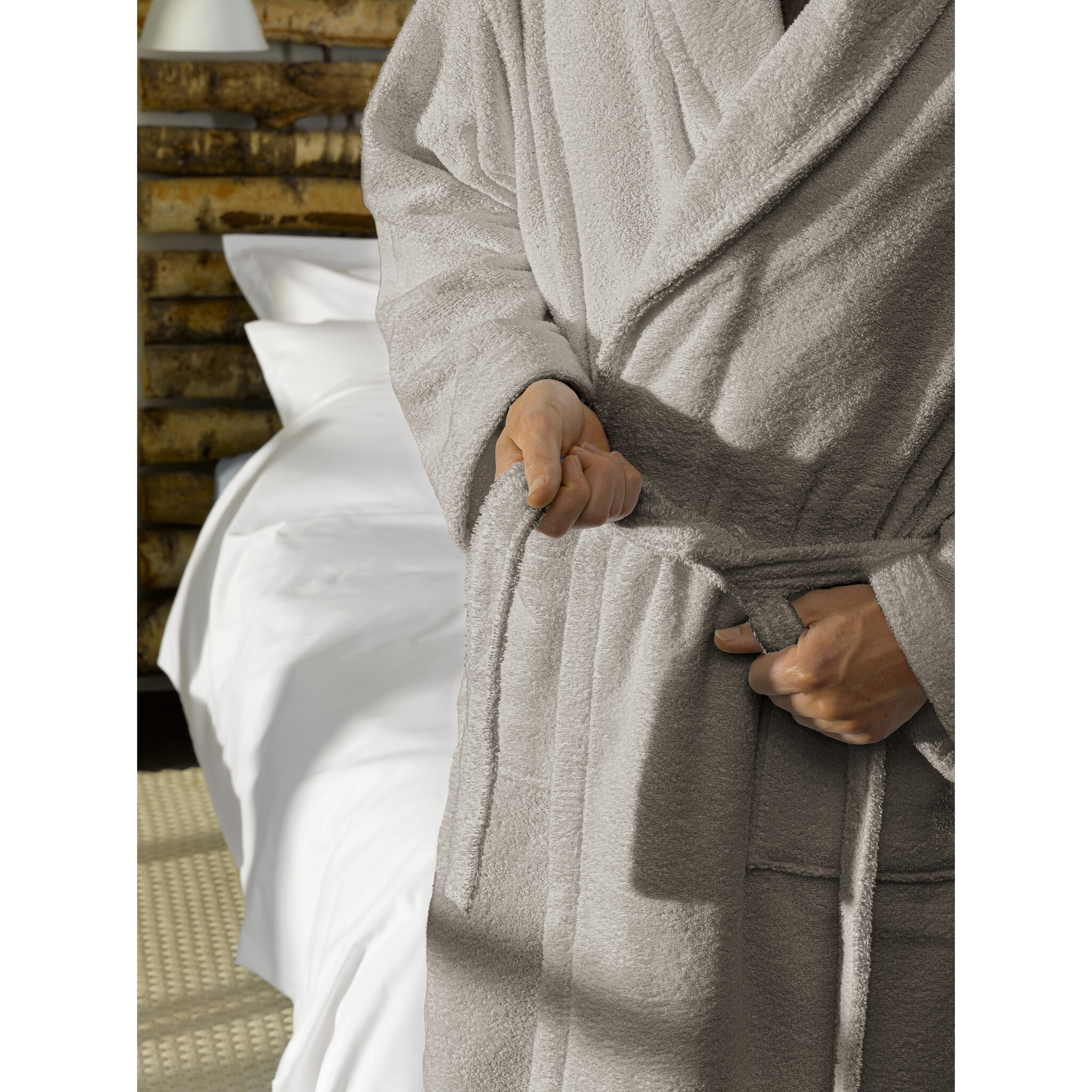 The shawl collar , patch pockets , and belt give the bathrobe a timeless, elegant look. Thanks to the 100% breathable cotton, it feels comfortable against the skin and stays beautiful, even after frequent washing.