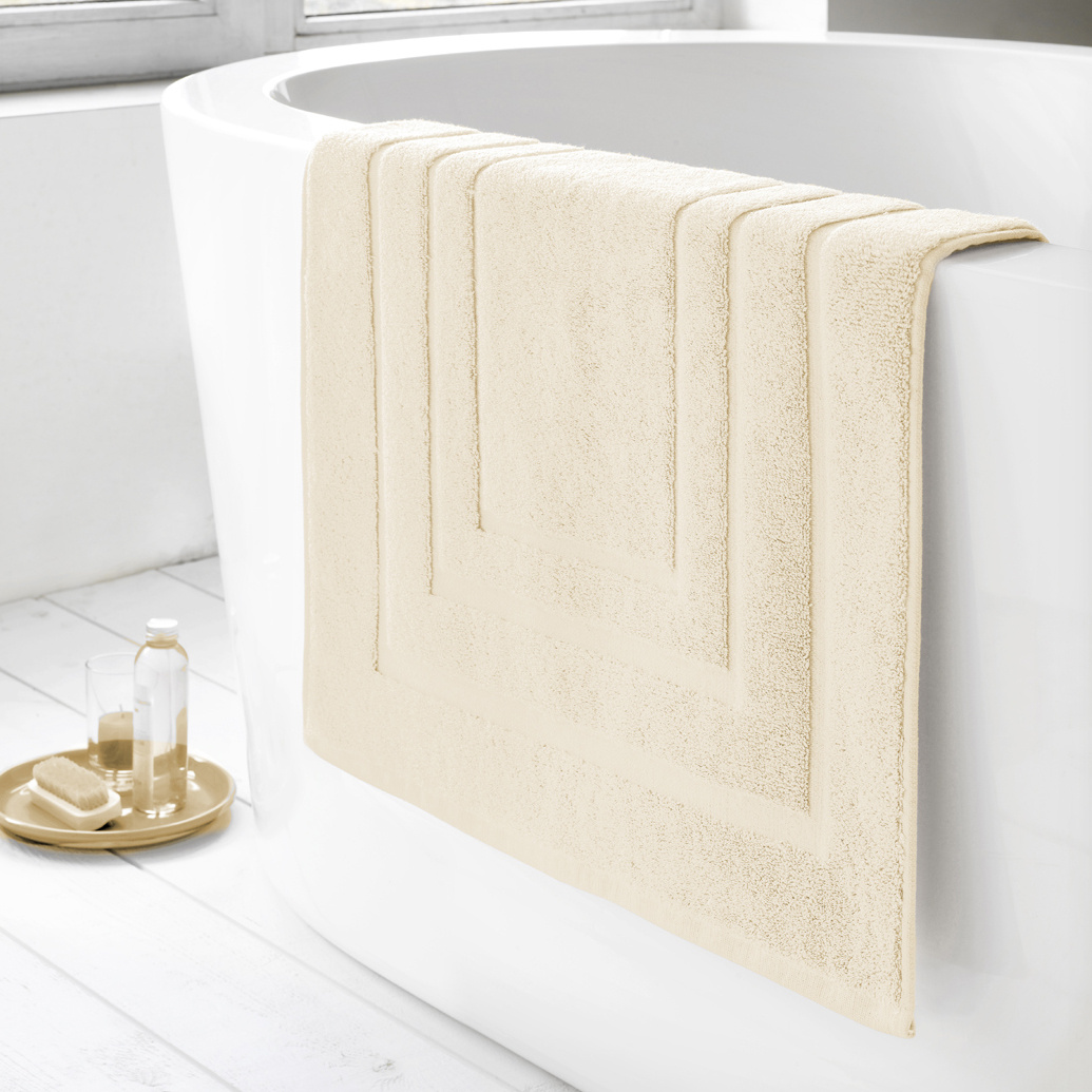This luxurious bath mat from De Witte Lietaer 's refined Pacifique bath linen collection guarantees the highest level of comfort and quality. Its 50 x 75 cm size and 100% combed cotton make it exceptionally soft and absorbent . The heavy 1000 g/m² weight creates a full, luxurious feel and makes the bath mat exceptionally durable , ideal for daily bathroom use. Various sizes and colors are available in the same collection.