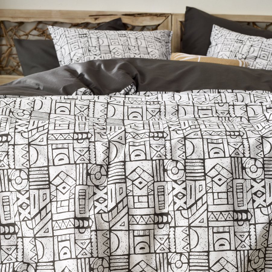 De Witte Lietaer Duvet Cover, Cuzco Stone Grey. Beautiful percale cotton duvet cover in hotel size. This duvet cover is made of combed cotton in a linen weave. The high weave density also ensures that the fabric feels very smooth. The printed percale duvet cover, as well as the pillowcases, are double-sided and therefore reversible with a unique design on the front and a uni-colour on the back, for a luxurious and calm effect. De Witte Lietaer is known for their quality products and rich history. In short, with a product from De Witte Lietaer you are buying an excellent experience.