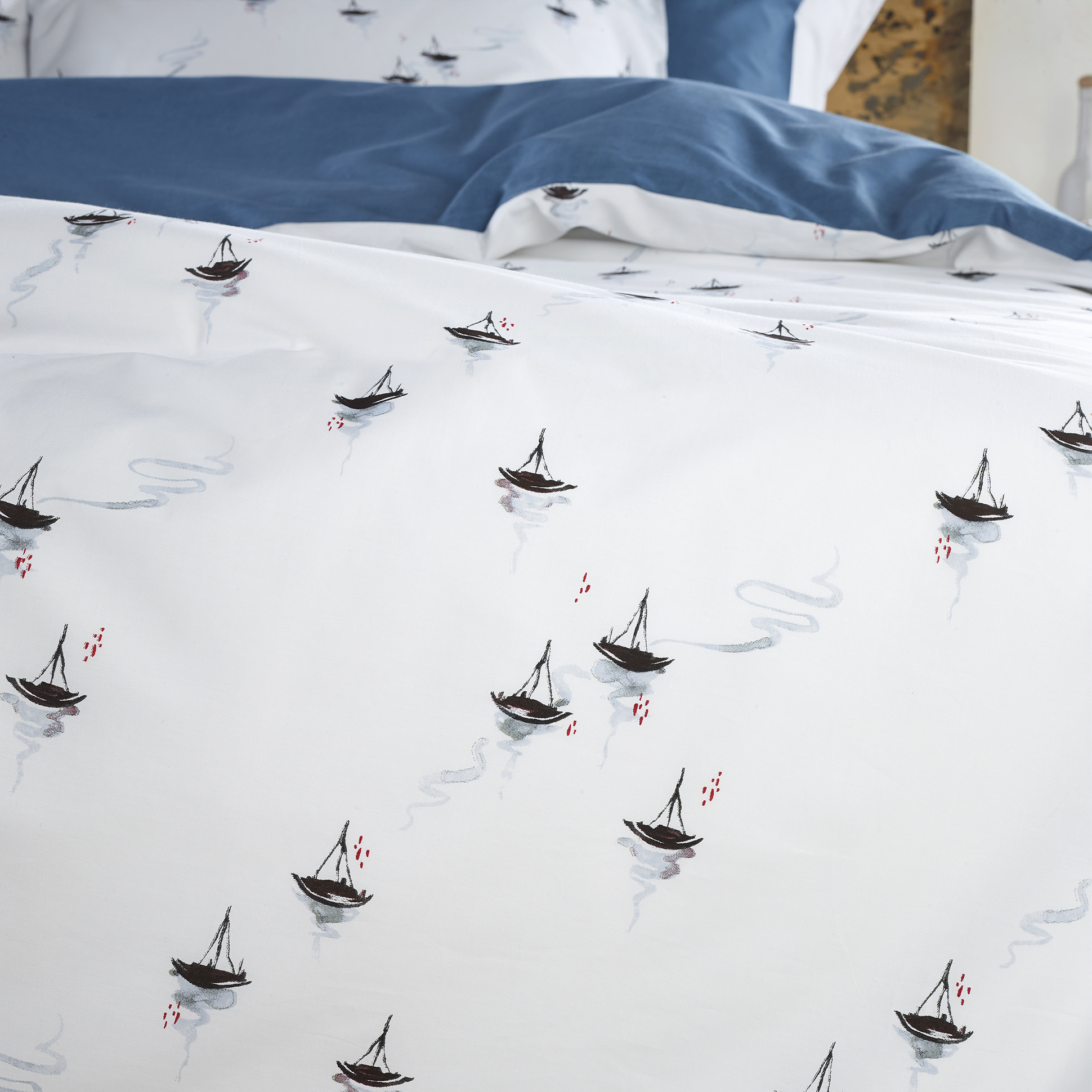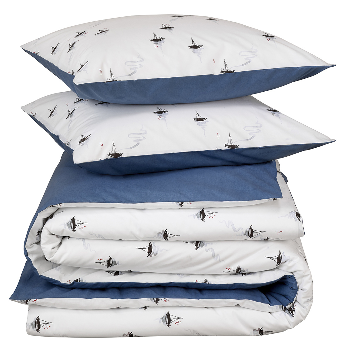 De Witte Lietaer Duvet Cover, Hiroshi Blue Horizon. Beautiful double percale cotton duvet cover. This duvet cover is made of combed cotton in a linen weave. The high weave density also ensures that the fabric feels very smooth. The printed percale duvet cover, as well as the pillowcases, are double-sided and therefore reversible with a unique design on the front and a uni-colour on the back, for a luxurious and calm effect. De Witte Lietaer is known for their quality products and rich history. In short, with a product from De Witte Lietaer you are buying an excellent experience.