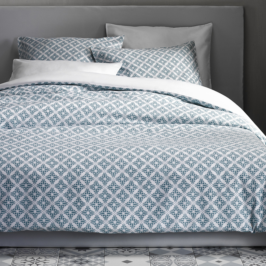 De Witte Lietaer Duvet cover Cotton Satin, Azulejos Tourmalin. Beautiful satin cotton Lits Jumeaux with a high weave density. The printed bed linen is a lightweight cotton satin that feels ultra comfortable due to the satin weave, the combed cotton and the extra silk gloss. The duvet cover, as well as the pillowcases, are double-sided and therefore reversible. The duvet cover has a wide bottle neck and can therefore easily be pulled over the duvet. De Witte Lietaer is known for their quality products and rich history. In short, with a product from De Witte Lietaer you buy an excellent experience.