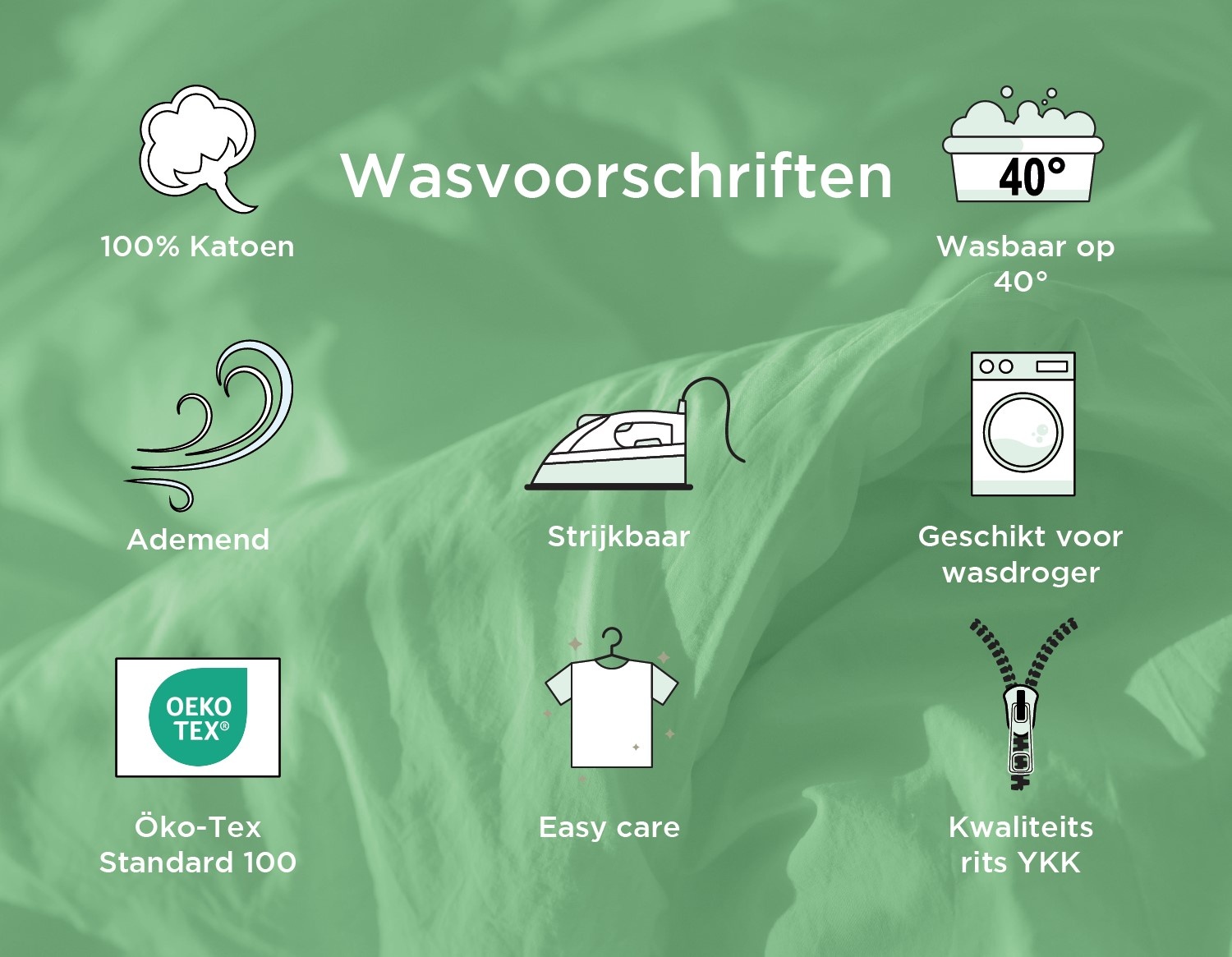 We advise our customers to wash the duvet cover inside out. Washing it inside out extends the cover's lifespan. Always read the care label for the correct temperatures before washing and drying.