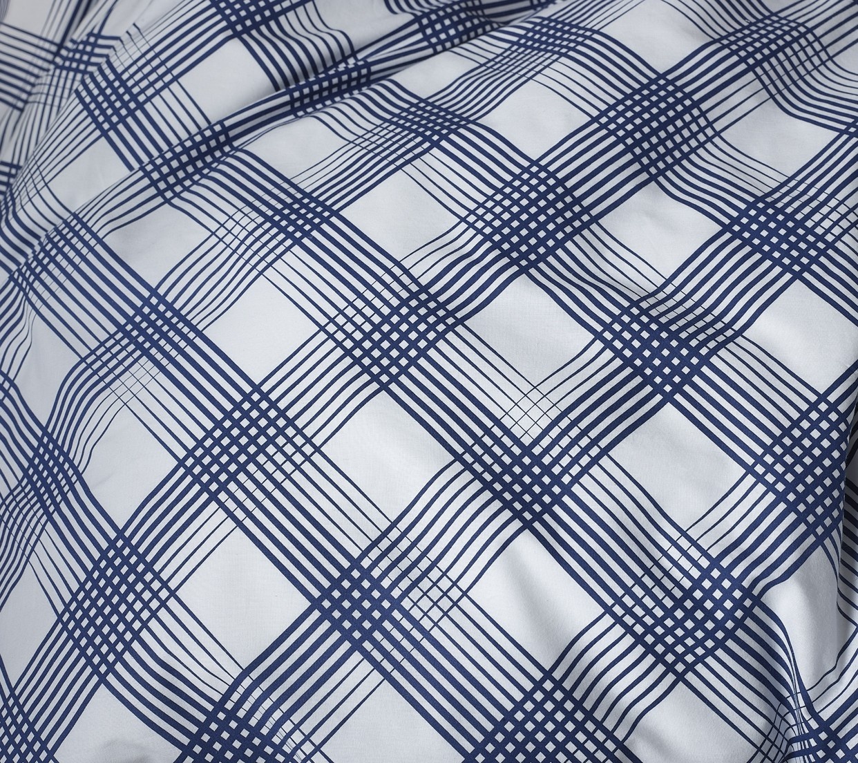 This stylish double duvet cover from Moodit 's Odil collection instantly brings warmth and character to your bedroom. The design features a playful diamond pattern in a beautiful shade of blue against a crisp white background, creating a vibrant yet balanced look . The matching pillowcases complement the design perfectly, completing the look.