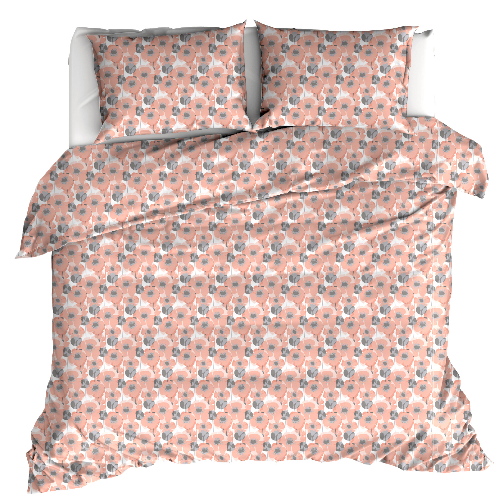 This stylish double duvet cover from Moodit 's Odil collection instantly adds warmth and character to your bedroom. The design features a beautiful floral pattern in a pink hue on a white background, creating a vibrant yet balanced look . The matching pillowcases complement the design perfectly, completing the look.