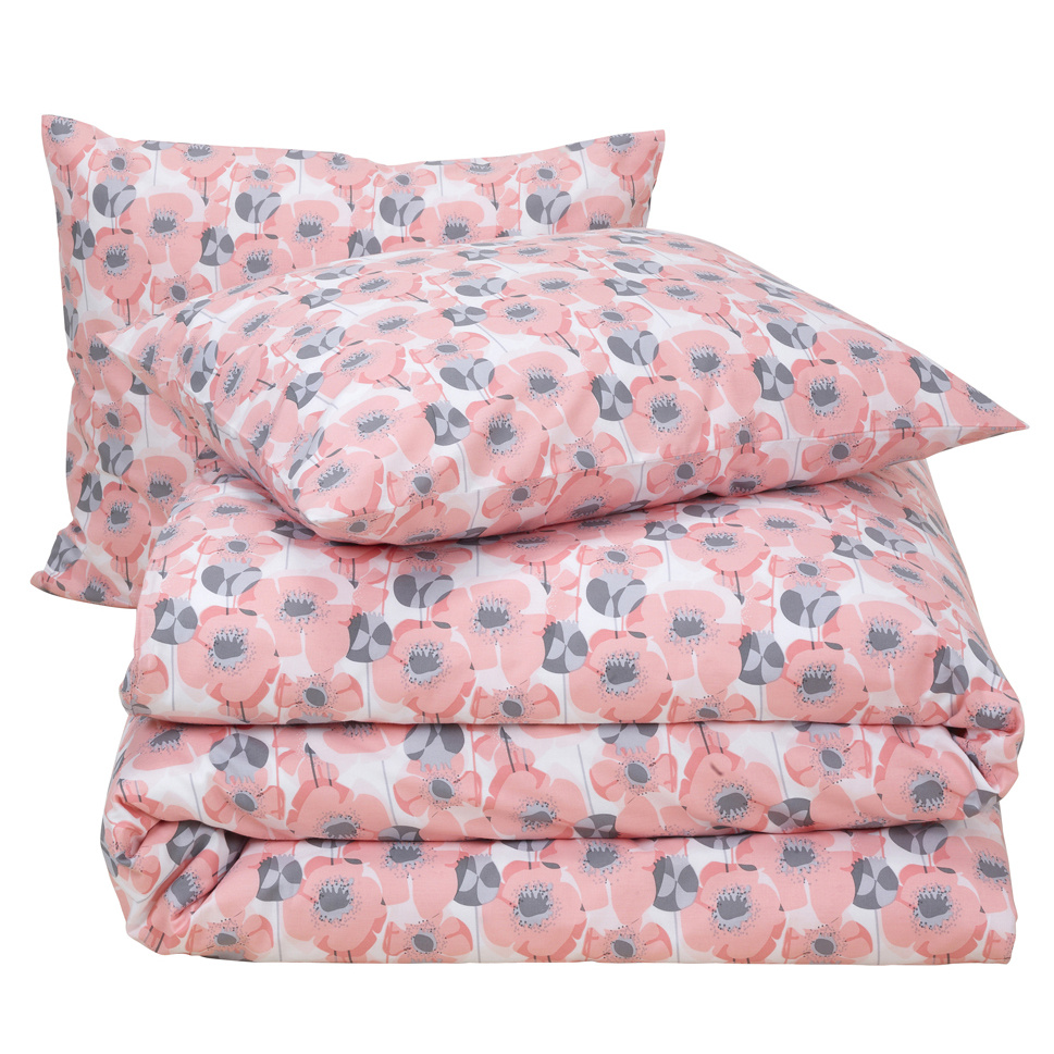This stylish hotel-sized duvet cover from Moodit 's Odil collection instantly brings warmth and character to your bedroom. The design features a beautiful floral pattern in a pink hue on a white background, creating a vibrant yet balanced look . The matching pillowcases seamlessly complement the design and complete the look.