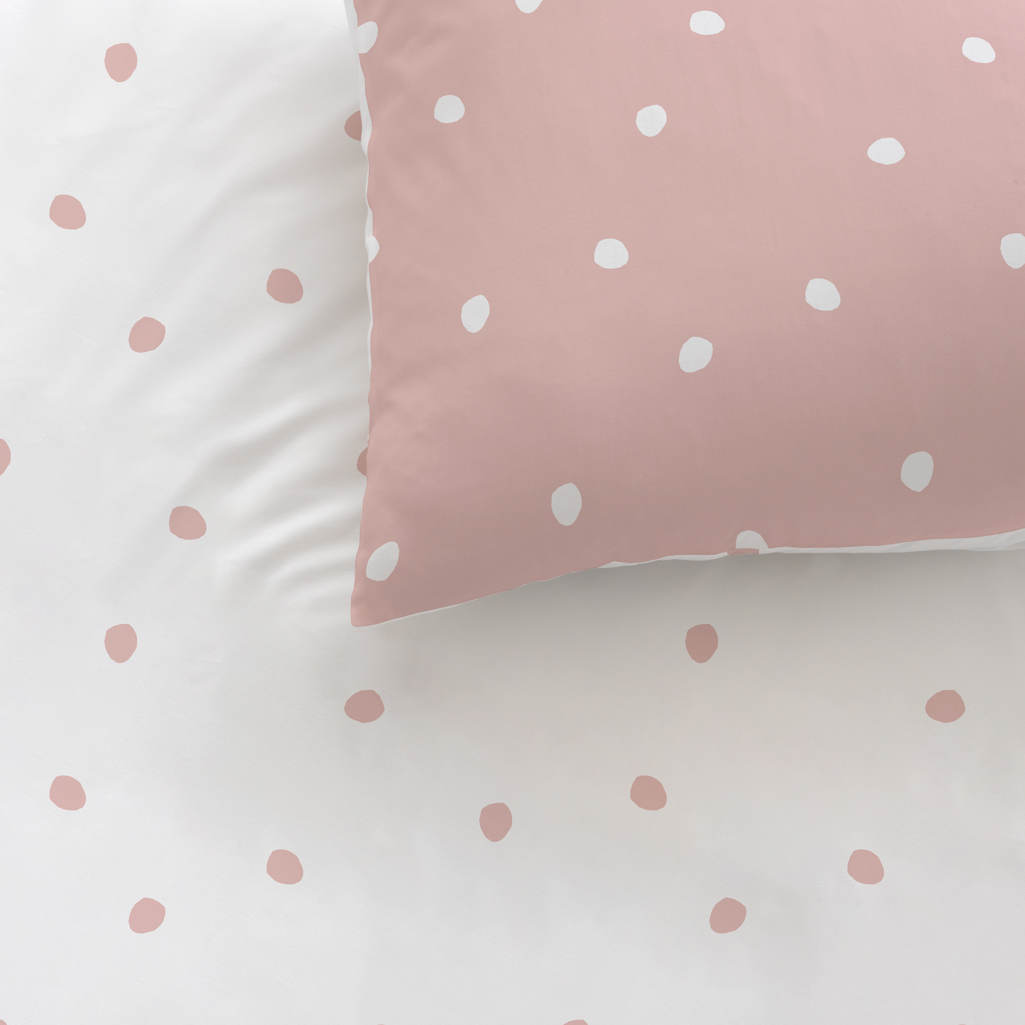 Matt & Rose Duvet Cover, Pink Spots. Luxury single cotton duvet cover from Matt & Rose. This item features a beautiful polka dot design on a calm pink background. The duvet cover and pillowcase are printed inversely on both sides, so you can choose from different designs when making the bed.
