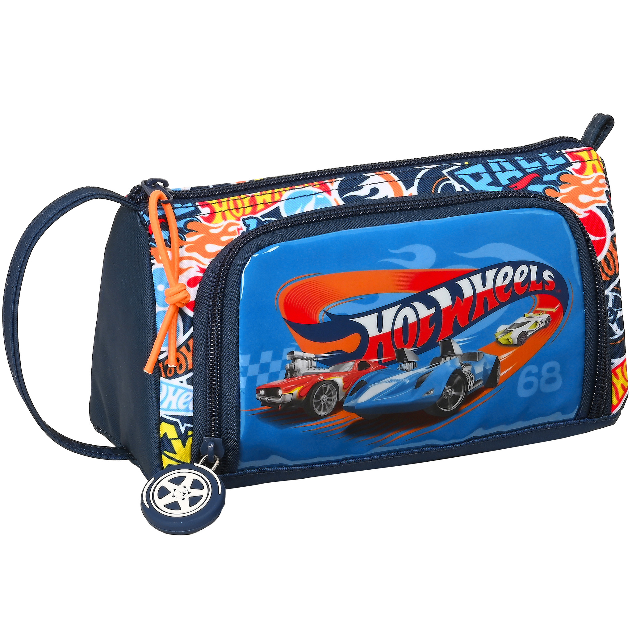 Hot Wheels Filled Pouch, Rally. This cool Hot Wheels pencil case is filled with pencils, markers, pens and even scissors. Everything you need for a school-age child. Of course also good to use at home and on vacation. The pouch has a cool Hot Wheels design and is accessible through two zippers. In short; a fantastic gift to give to a drawing enthusiast and fan of these toy cars.