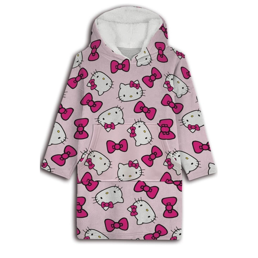 These will be cozy and snug evenings with this fine fleece hoodie from Hello Kitty . Are you always cold and are you a big fan of the iconic cat Hello Kitty? Then this fleece sweater is a real must-have ! Featuring images of Hello Kitty and her famous pink bow! Stay nice and warm thanks to the lined hood with teddy material. The sweater also has a pocket on the front to keep your hands warm. Long movie nights and snuggling up in this sweater; who wouldn't want that?! A great gift idea for the real Hello Kitty fan for a birthday or other festive day.