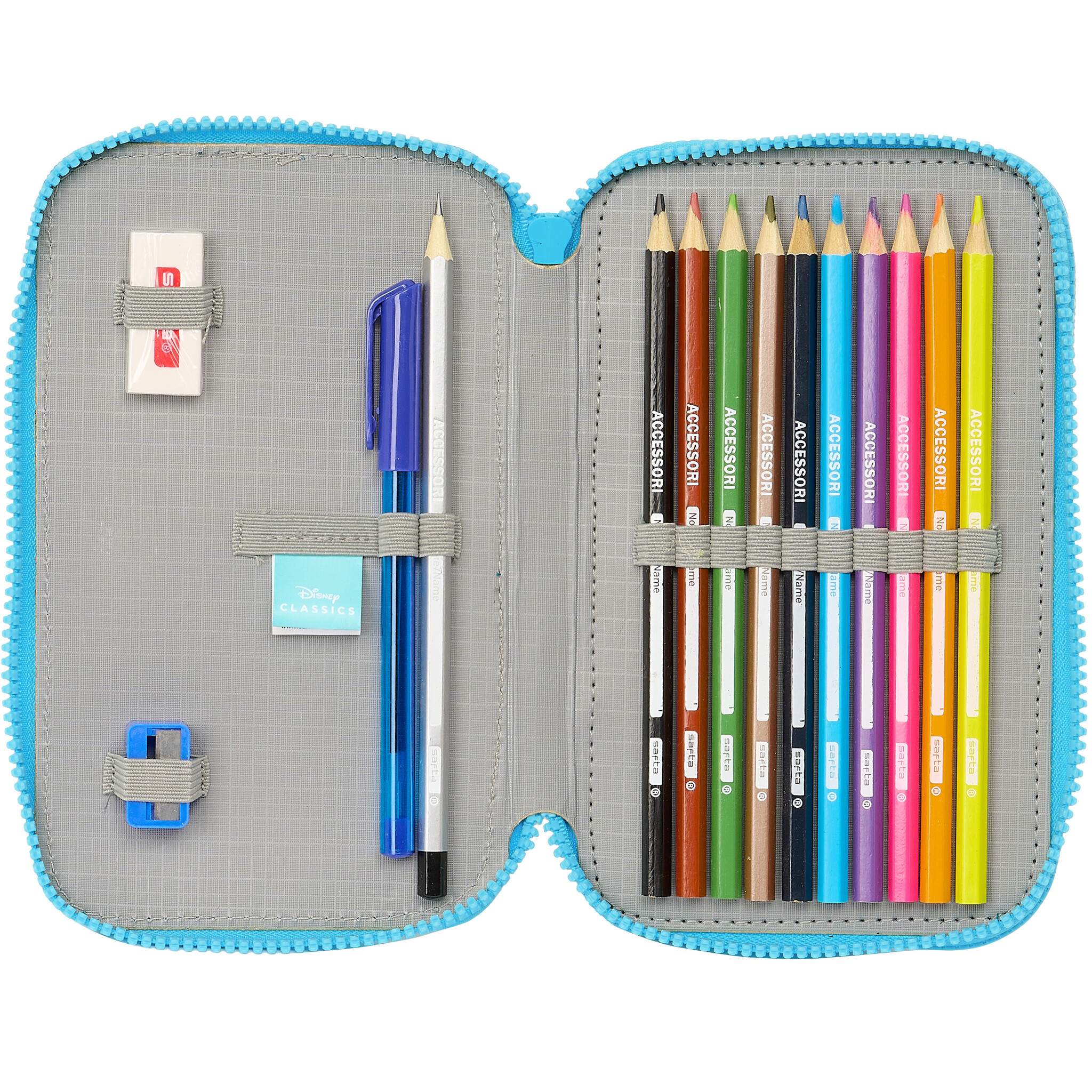 Disney Stitch Filled Pencil Case, Scrump. Nice, filled pencil case of Stitch and his cuddly toy Scrump. Do you also have a favorite cuddly toy? This beautiful pencil case is filled with various writing and drawing supplies, such as felt-tip pens, pencils and a pencil sharpener. Everything to achieve the most beautiful drawing creations. Ideal for use when traveling, at school or at home. The pencil case has a nice finish and has two clear compartments that close with a zipper. A great gift idea for any Lilo & Stitch fan.