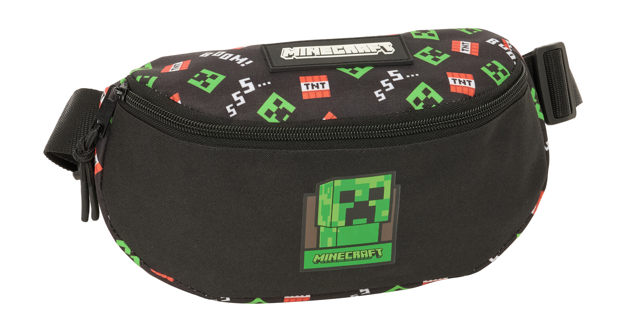 Go on an adventure in style with this cool Minecraft waist bag . This black bag has a compact size of 23 x 14 x 9 cm and a capacity of 2.9 liters, perfect for carrying small items such as your phone, keys, or snacks. The bag is made of sturdy polyester , making it suitable for daily use.