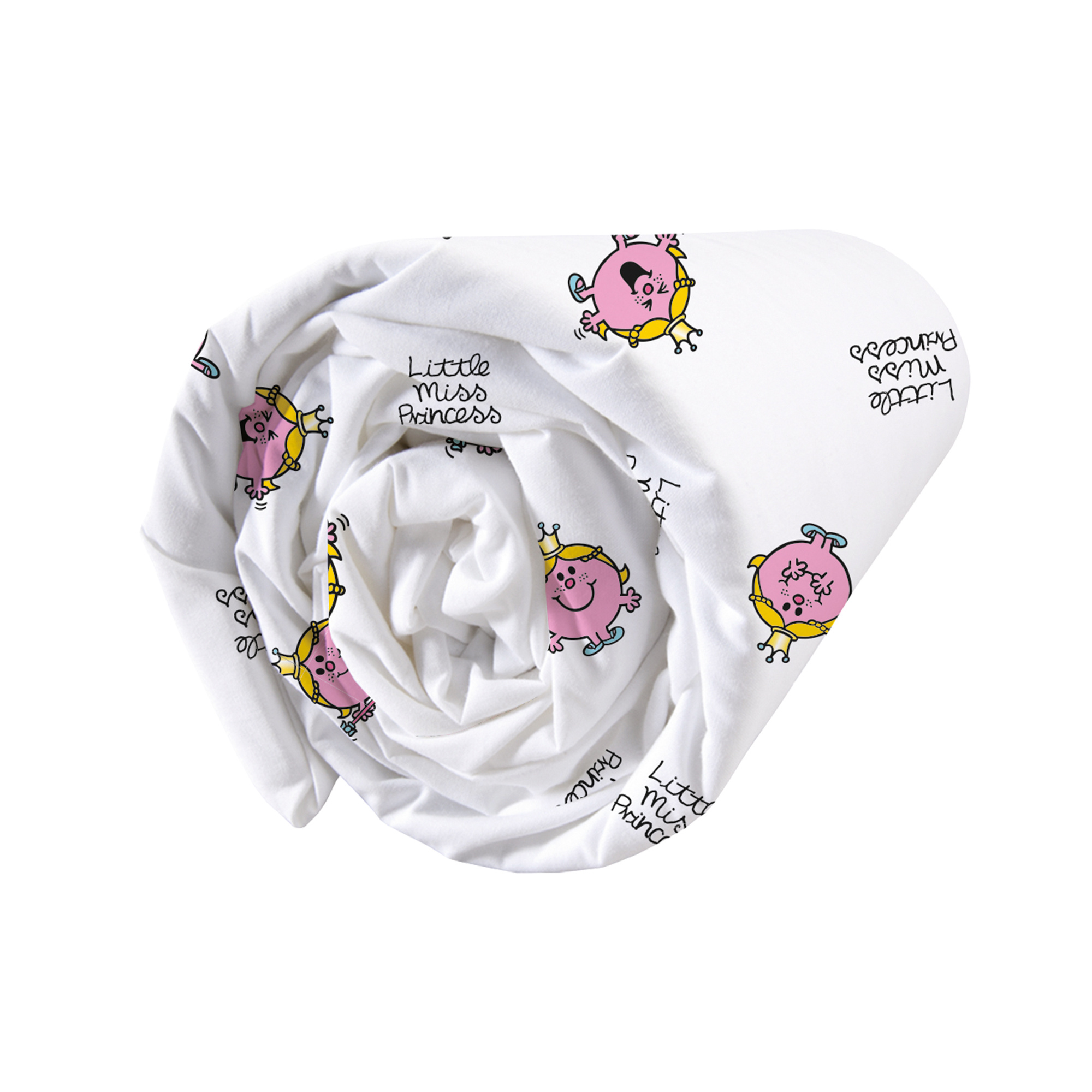Mister Little Miss Fitted sheet, Miss Princess. Mrs. Princess has put on her crown and is doing a little dance. Are you dancing with her? This nice single fitted sheet comes from the series "Meneertjes en Mevrouwtjes". A matching duvet cover is available separately.