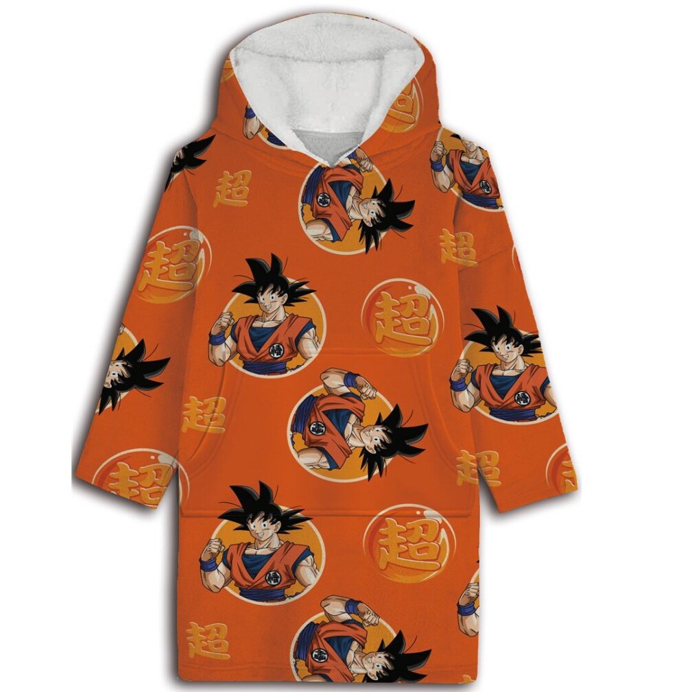 Dragon Ball Z Hoodie Fleece Blanket, Warrior. Wonderfully warm fleece hoodie from the well-known Japanese series Dragon Ball Z. Features a pattern of the ninja Son Goku. The hoodie sweater has a hood and a pocket on the front. Feel free to turn the heater down a few degrees; You will get through the winter with this warm sweater! An amazing gift idea for the true Dragon Ball fan for a birthday or the holidays.