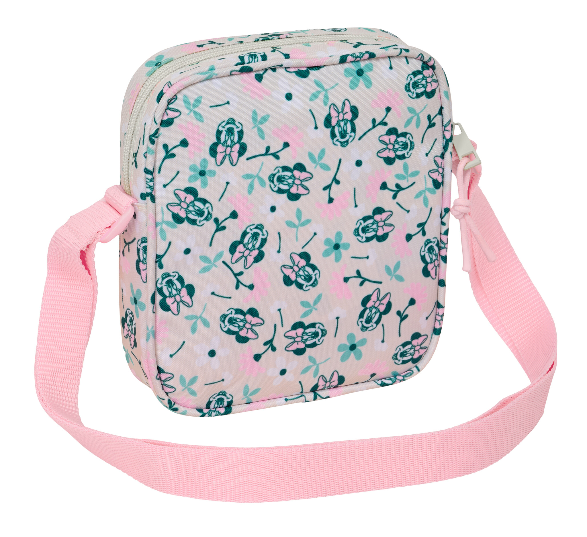 This mini shoulder bag is a great addition for any fan of Disney's Minnie Mouse . An ideal size bag for a day out or playing outside. The pink bag features a cute image of Minnie Mouse surrounded by cheerful flowers. You can store various items in the zippered compartment, such as keys, a phone, and a wallet. A handy and practical accessory for any occasion . Thanks to the adjustable shoulder strap , the bag can be worn in various ways: over the shoulder or as a crossbody bag. A nice gift idea for a birthday, holiday, or as a surprise for the true Minnie Mouse fan.