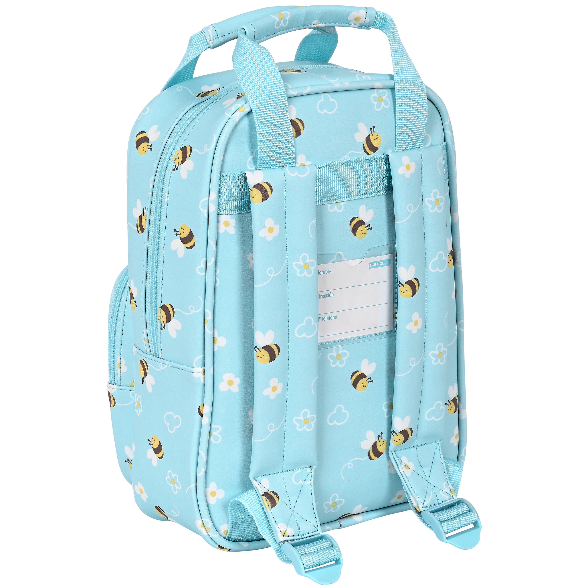Safta Toddler Backpack, Bee. Cute toddler backpack with a cheerful bee, surrounded by flowers on a light blue background. This fine and sturdy bag is ideal for playgroups, daycare or after-school care. An easy-to-clean backpack, with just enough space for a lunch box, drinking cup and some clothes. This makes it ideal to take with you on a day trip. A great gift to give for a birthday or the holidays and an essential item for the new back-to-school season!