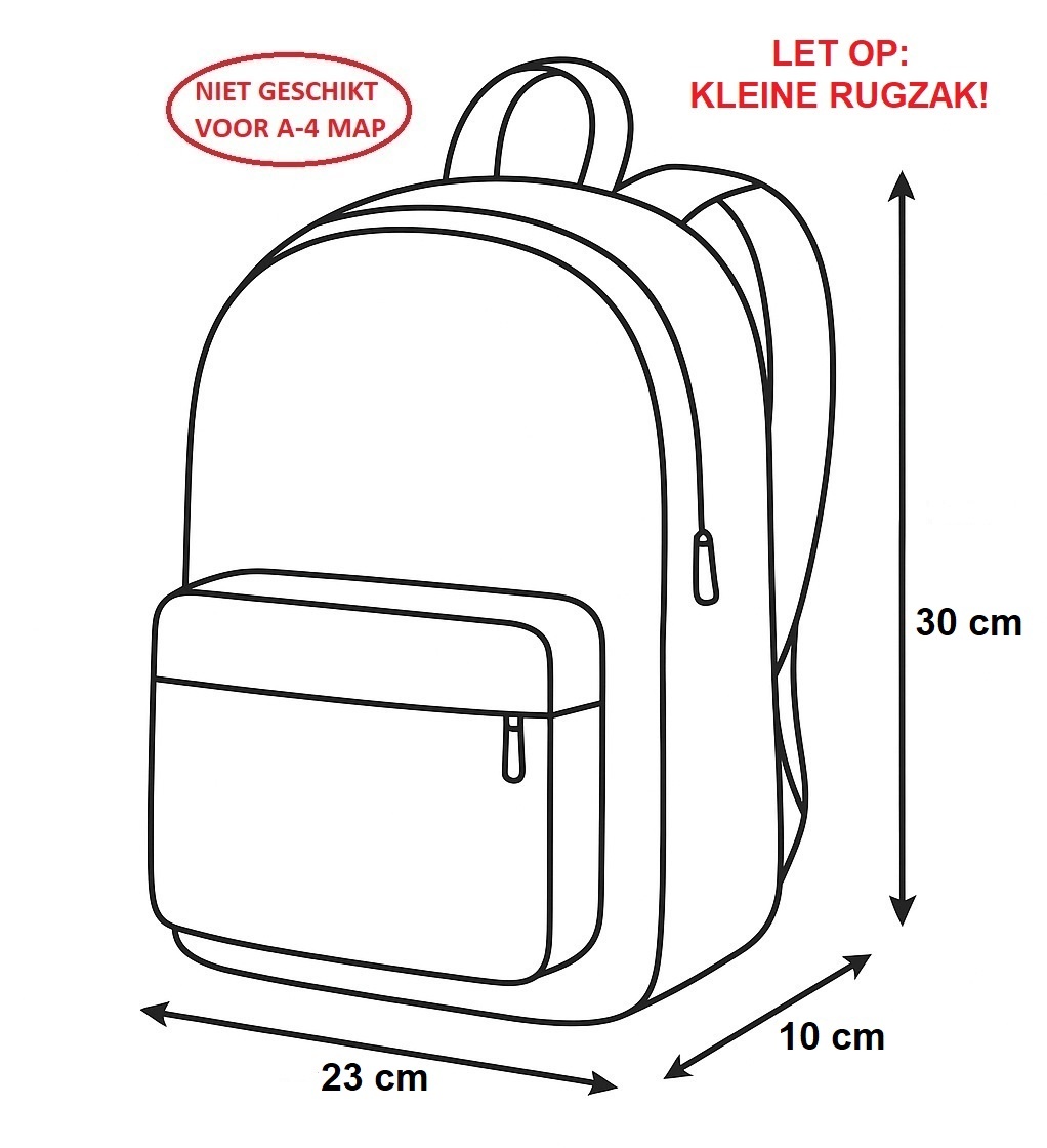 Please check the size you need before purchasing. A useful tip is to measure your child's back and compare it with the dimensions of the backpack. Also note that bags are often narrower at the top than at the bottom.