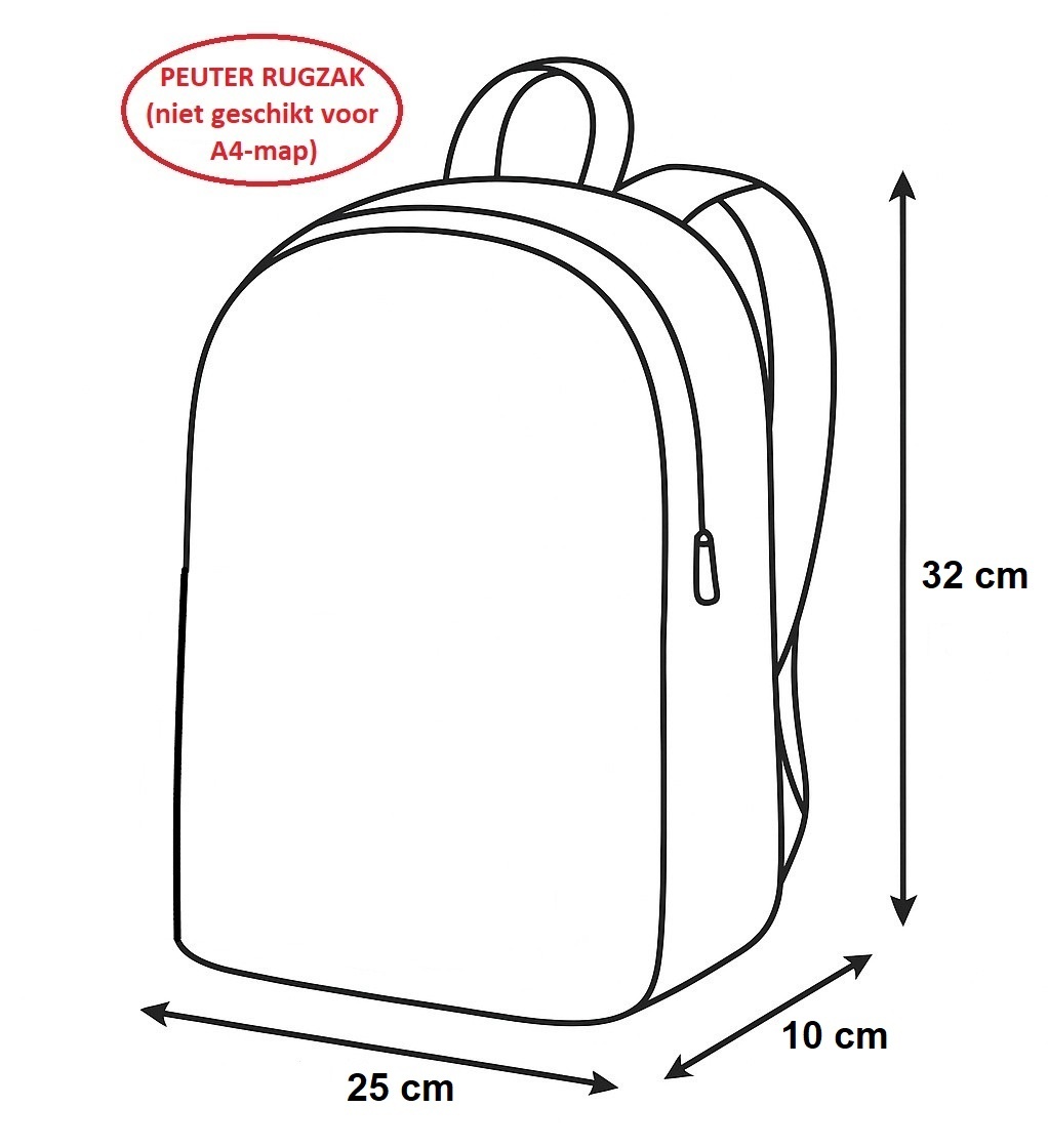 Please check the size you need before purchasing. A handy tip is to measure your child's back and compare it with the dimensions of the backpack. Also note that bags are often narrower at the top than at the bottom.