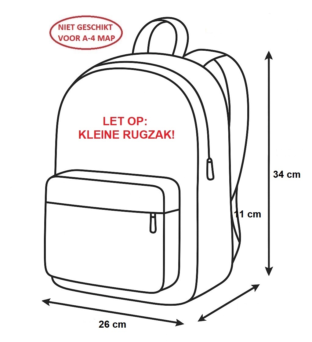 Please check the size you need before purchasing. A useful tip is to measure your child's back and compare it with the dimensions of the backpack. Also note that bags are often narrower at the top than at the bottom.