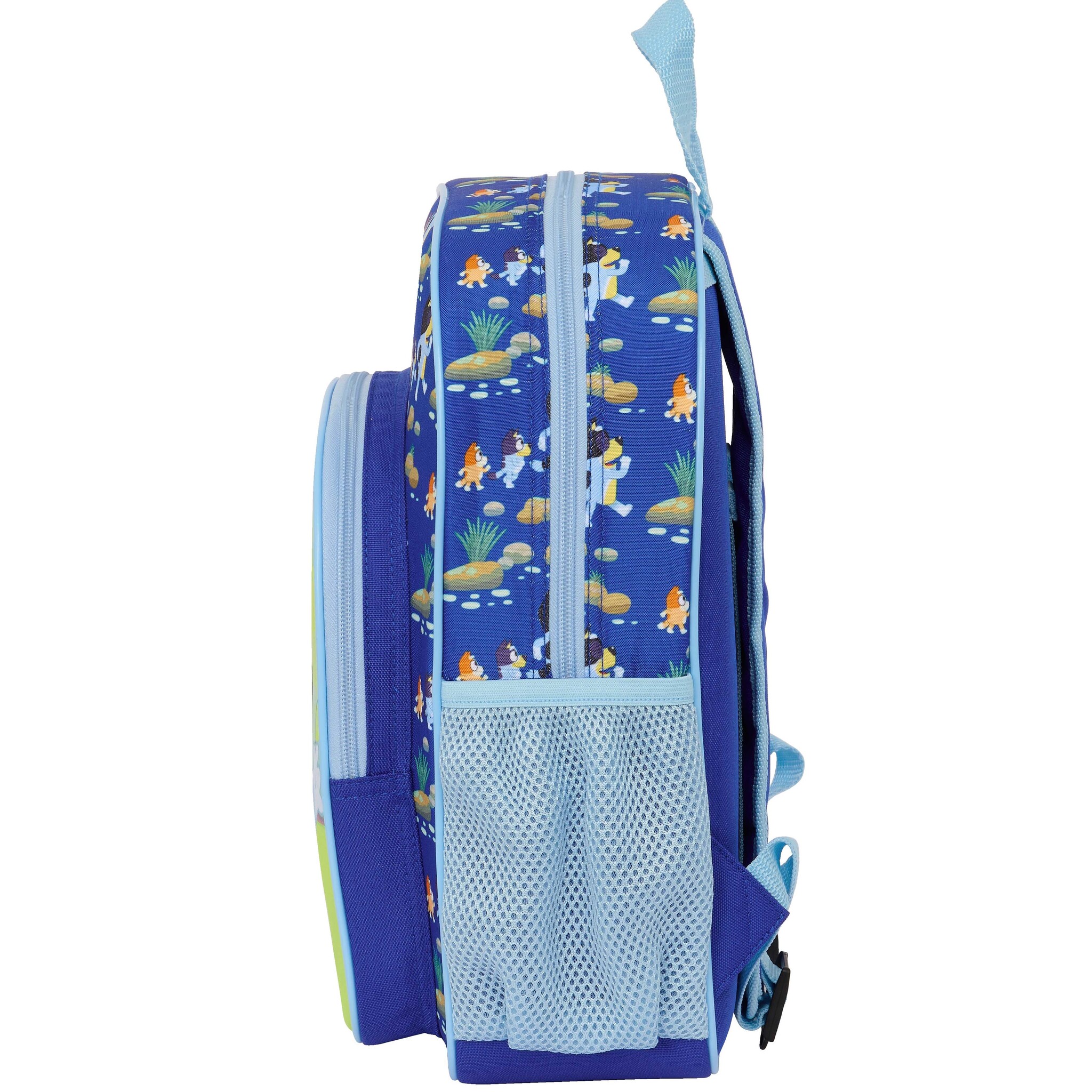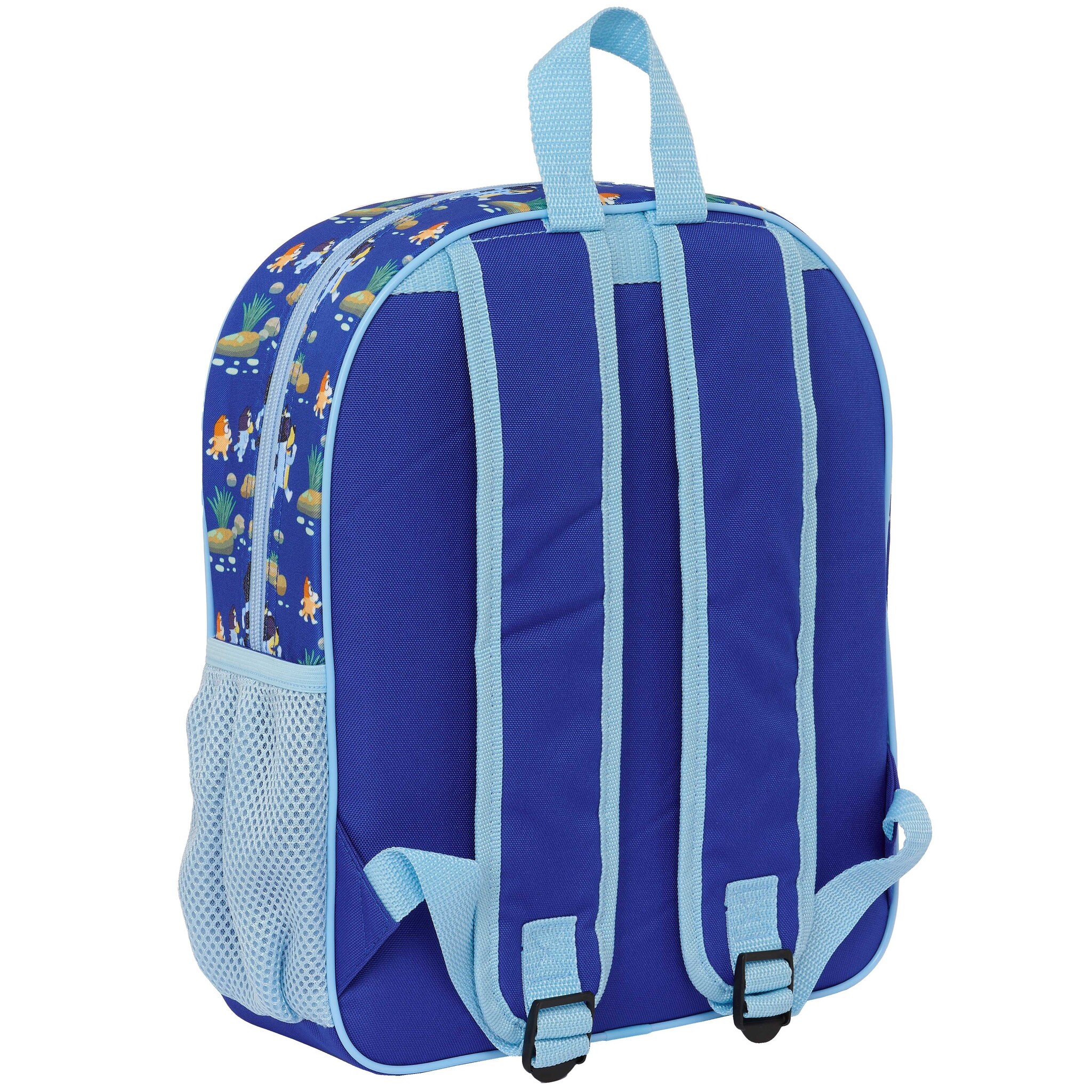 Bluey Backpack, Happy. Cheerful backpack from Bluey; the Australian Blue Heeler dog who has managed to win everyone's heart. Bluey is very happy with that. This nice bag, with two spacious compartments, is very suitable for the first years at school and offers enough space for some school supplies, an air box and a drinking cup. A great gift for the back-to-school season or a birthday.