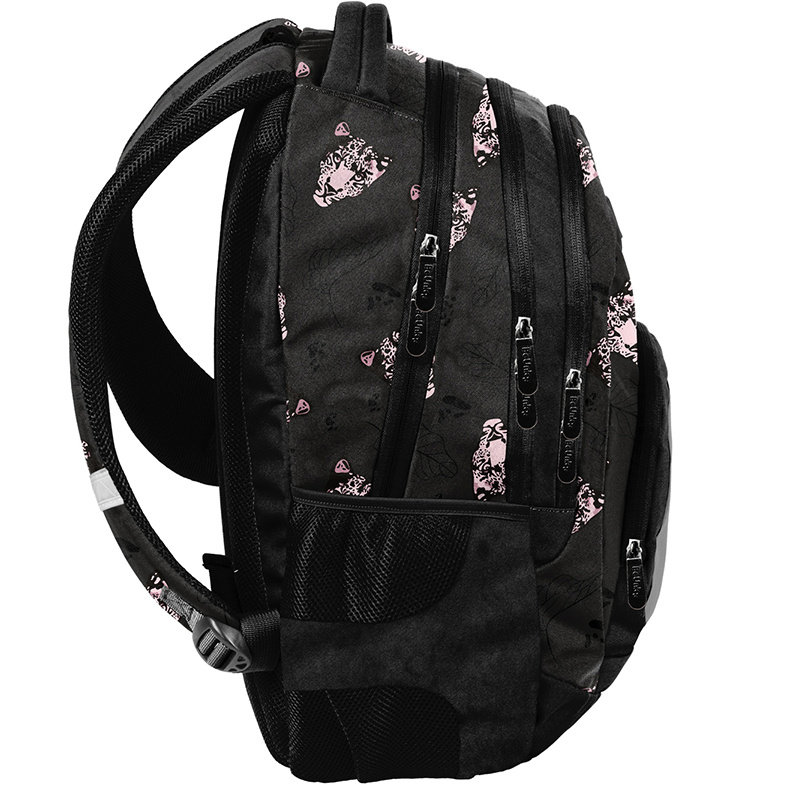 BeUniq Backpack, Panther. Unique backpack with a print of pink panthers! This cool backpack has four zipped compartments with a handy subdivision. This keeps all your school supplies organized and clear. The bag has a reinforced bottom and has padded and adjustable shoulder straps. A great bag for school, sports or a day out and a great back-to-school gift.