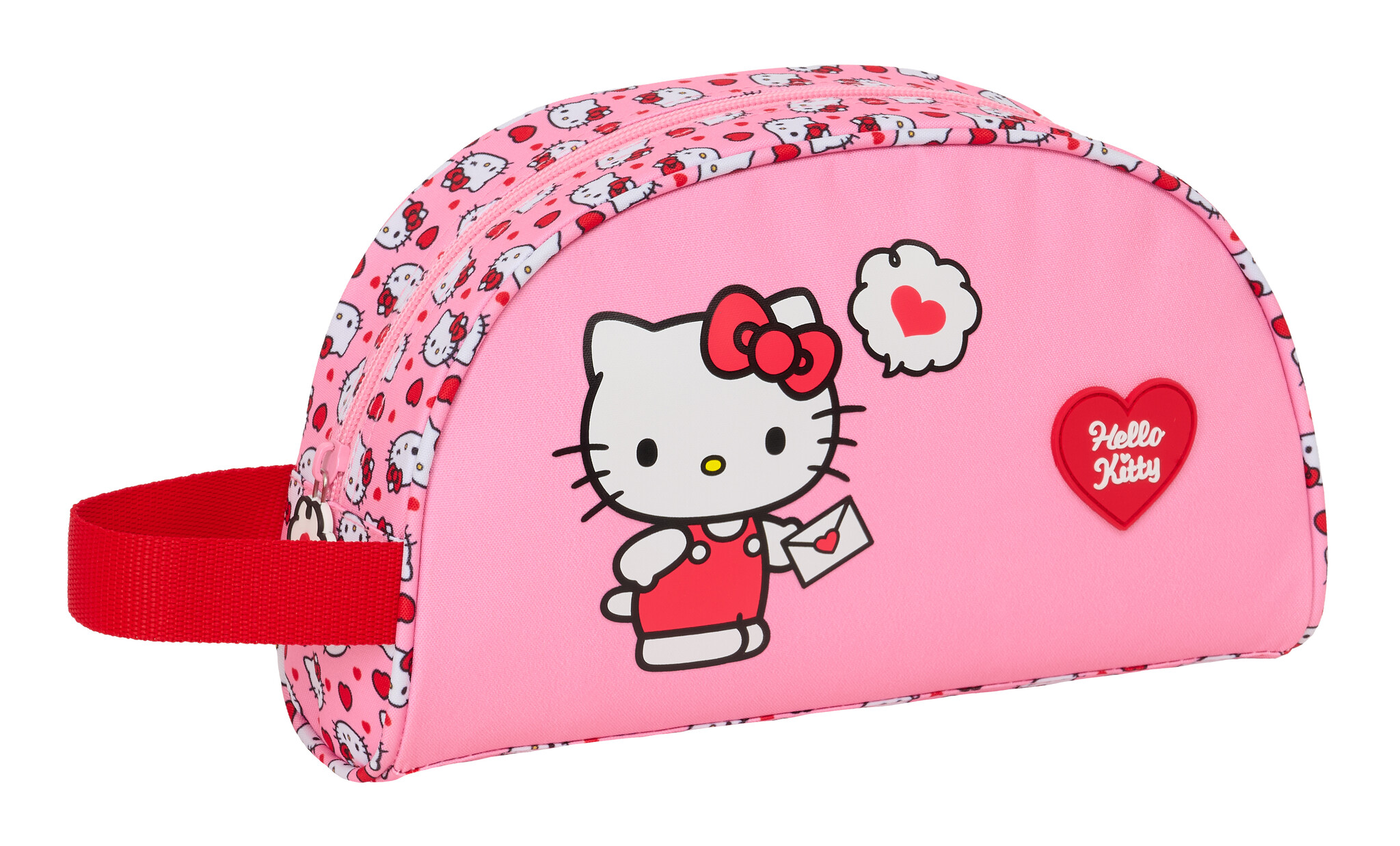 This cheerful Hello Kitty toiletry bag is a cute and practical must-have for on the go. The pink design, featuring Hello Kitty holding a love letter on the front, creates a sweet and playful look that immediately catches the eye.