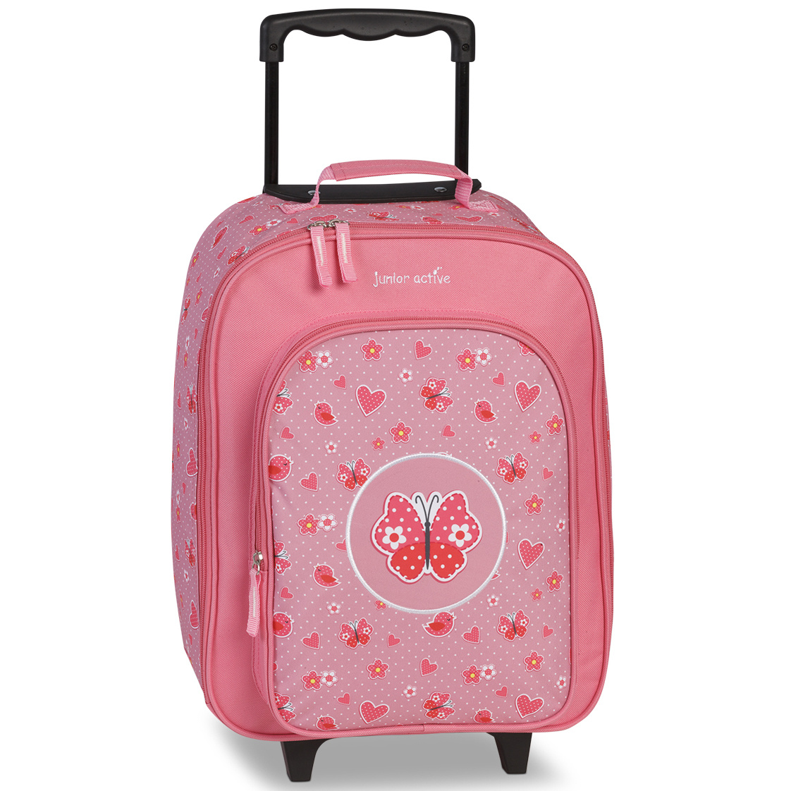 Fabrizio Trolley, Butterfly. Be well prepared for your trip with this nice suitcase. This trolley is ideal for a night or weekend stay or as hand luggage on the plane. Easy to carry by hand thanks to the pull-out handle. The two compartments provide enough space for some clothes and/or toys. In short; a nice and versatile trolley with a beautiful finish of butterflies and hearts. Who can you make happy with this nice suitcase?