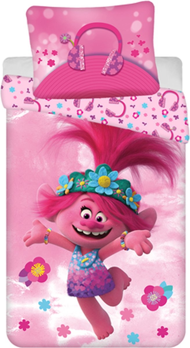 Housse de couette Trolls, Poppy - Simple - 140 x 200 + 70 x 90 cm - Coton