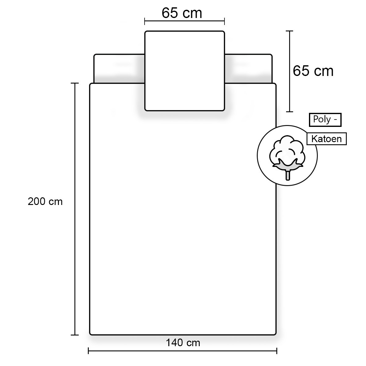 - Taie d'oreiller : 65 x 65 cm