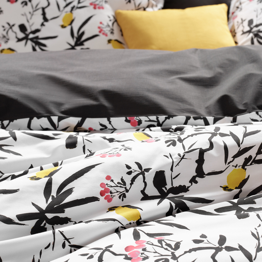 De Witte Lietaer Housse de couette Aiko, Black Stroke. Magnifique housse de couette simple en percale de coton. Cette housse de couette est réalisée en coton peigné tissage lin. La haute densité de tissage garantit également que le tissu est frais et lisse. De plus, il respire bien et absorbe l’humidité. La housse de couette imprimée, ainsi que la taie d'oreiller, sont double face et peuvent donc être utilisées des deux côtés. Le devant a un design unique et le dos est uni, ce qui donne un effet luxueux.