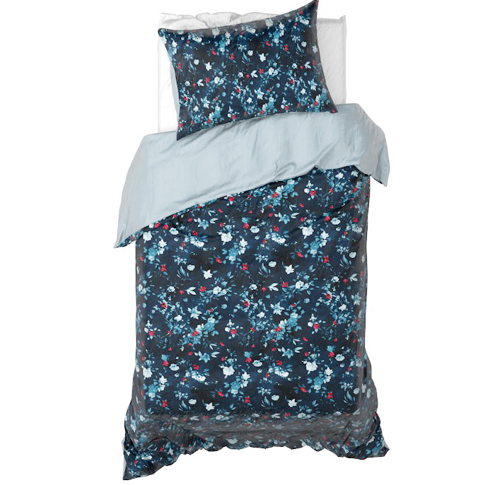 Cette housse de couette de la collection satinée de De Witte Lietaer confère à la chambre une allure élégante et moderne grâce à son subtil motif floral sur fond bleu, créant une ambiance à la fois ludique et apaisante . Le revers uni et les taies d'oreiller assorties apportent équilibre et raffinement à l'ensemble.