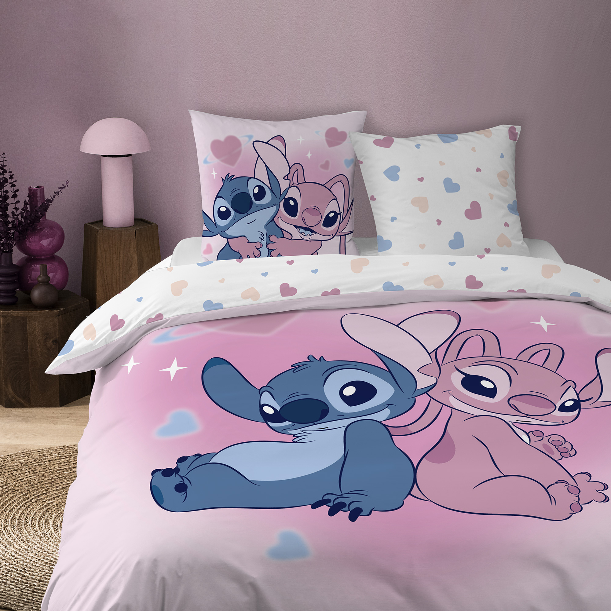 Housse de couette Disney Lilo & Stitch Bisous 240x220 + 2x63x63