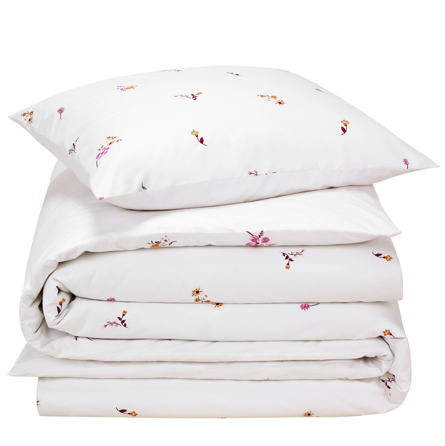 Cette housse de couette vous enveloppe d'une douceur raffinée et d'un confort agréablement frais , idéale pour ceux qui apprécient un sommeil frais et élégant. Sa finition haut de gamme et son rabat extra-large garantissent un ajustement parfait et un style impeccable dans n'importe quelle chambre. La housse de couette arbore un subtil imprimé floral rose/orange sur fond blanc. Le revers est d'un blanc neutre.