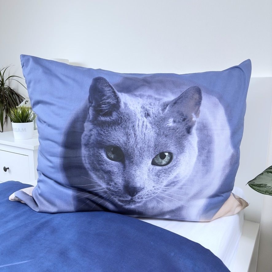 Cette housse de couette une place en coton est un rêve pour les amoureux des chats. Le devant met en scène un magnifique chat bleu russe , grand et fier, avec son regard doux et caractéristique qui vous fera ronronner. Le dos surprend avec un motif ludique d'images de chats, parfait pour ceux qui aiment alterner entre calme et gaieté. Douce et respirante , la housse de couette vous garantit un sommeil confortable chaque nuit, que votre chat soit à vos pieds ou non. La taie d'oreiller extra-large (70 x 90 cm) complète l'ensemble, avec le même chat bleu russe dans une charmante position assise. Idéale pour se blottir. Un ajout douillet et réconfortant à toute chambre où règne la domination féline. Un cadeau charmant pour tout amoureux des chats ou des animaux !