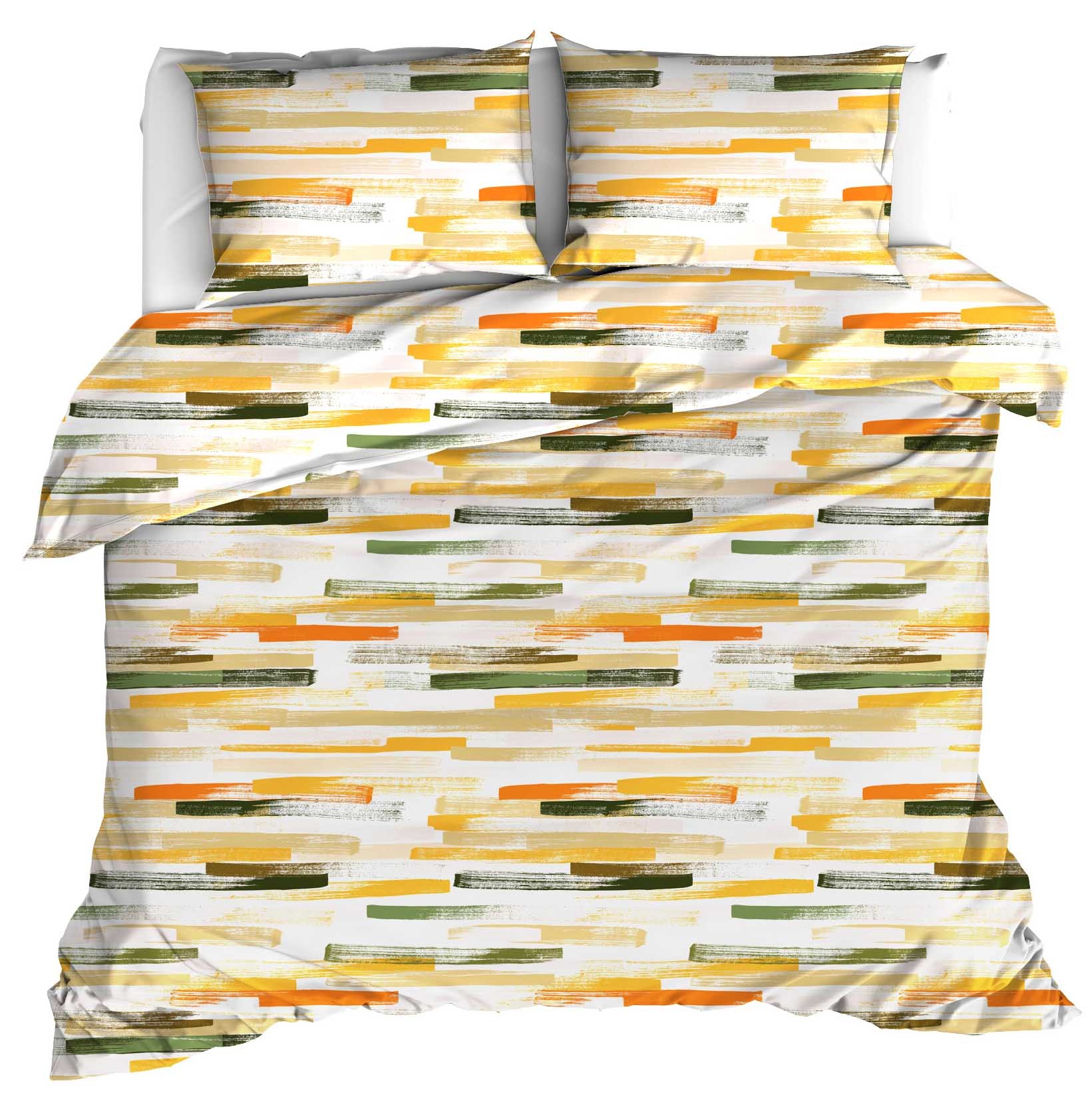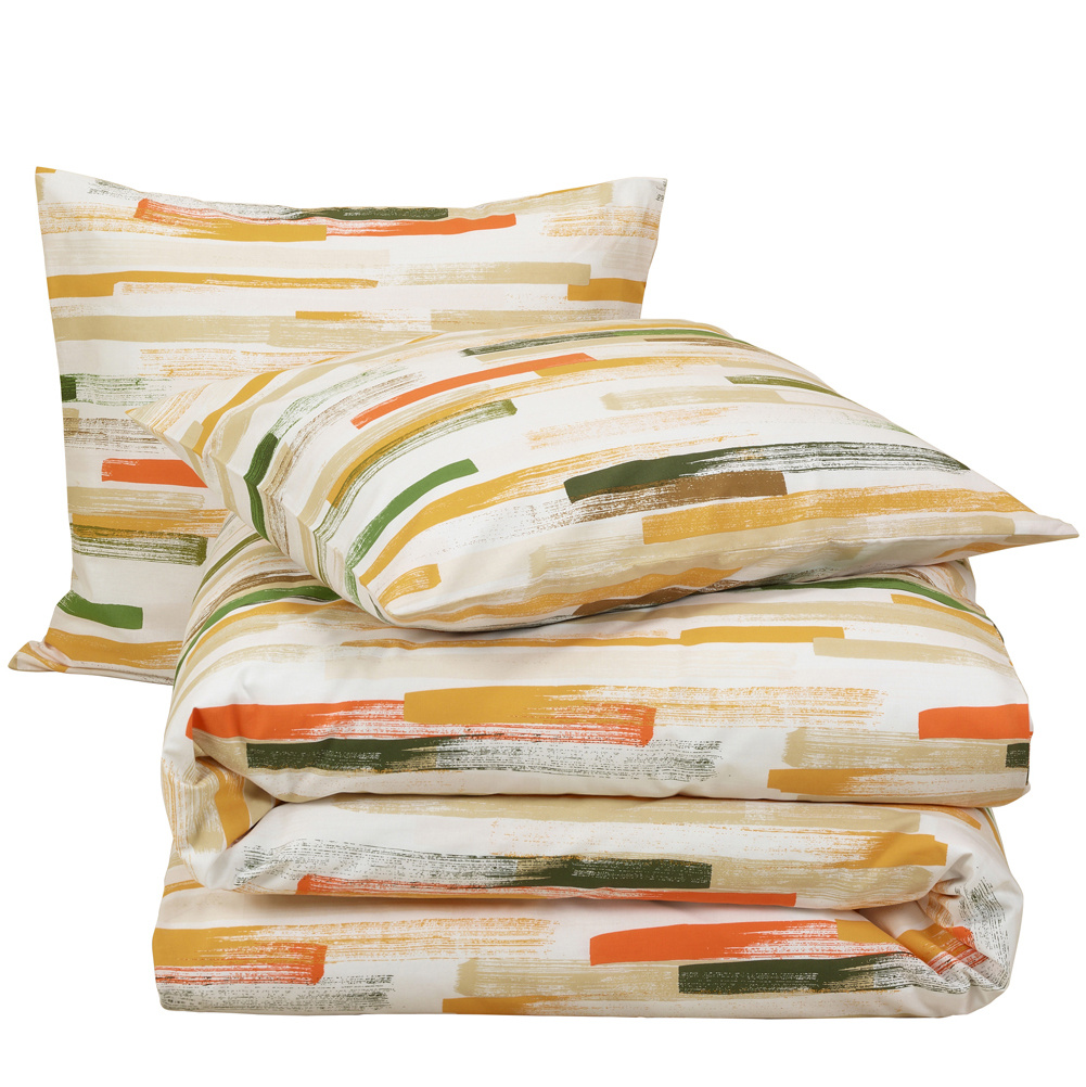 Cette élégante housse de couette aux dimensions d'une chambre d'hôtel, issue de la collection Odil de Moodit, apporte instantanément chaleur et caractère à votre chambre. Son motif à rayures graphiques et ludiques, décliné en plusieurs couleurs sur un fond blanc éclatant, crée un style à la fois dynamique et harmonieux . Les taies d'oreiller assorties complètent parfaitement le design et parachèvent l'ensemble.
