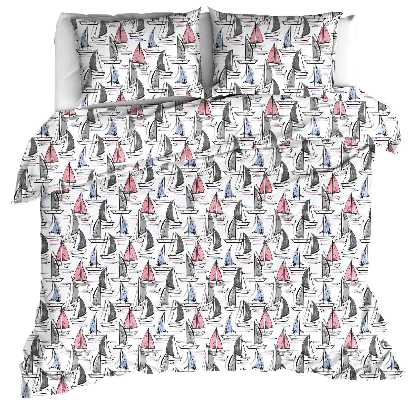 Cette élégante housse de couette double de la collection Odil de Moodit apporte instantanément chaleur et caractère à votre chambre. Son motif ludique de voiliers variés sur fond blanc éclatant crée un style à la fois dynamique et harmonieux . Les taies d'oreiller assorties complètent parfaitement le motif et parachèvent l'ensemble.
