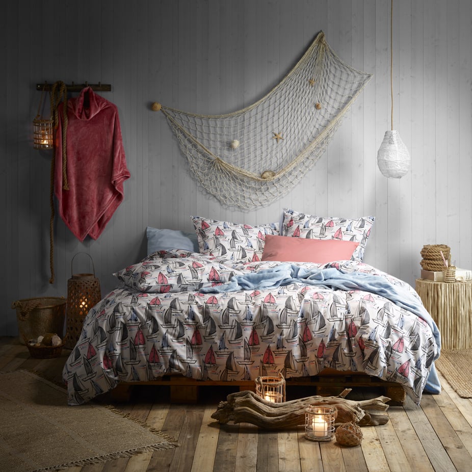 Housse de couette Moodit Odil Regatta Mix - 200 x 200/220 cm + 2 x 60 x 70 cm - Blanc - Coton