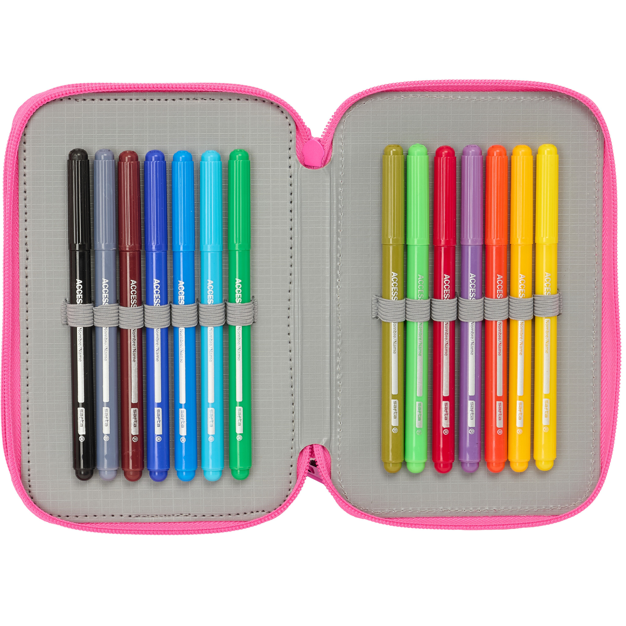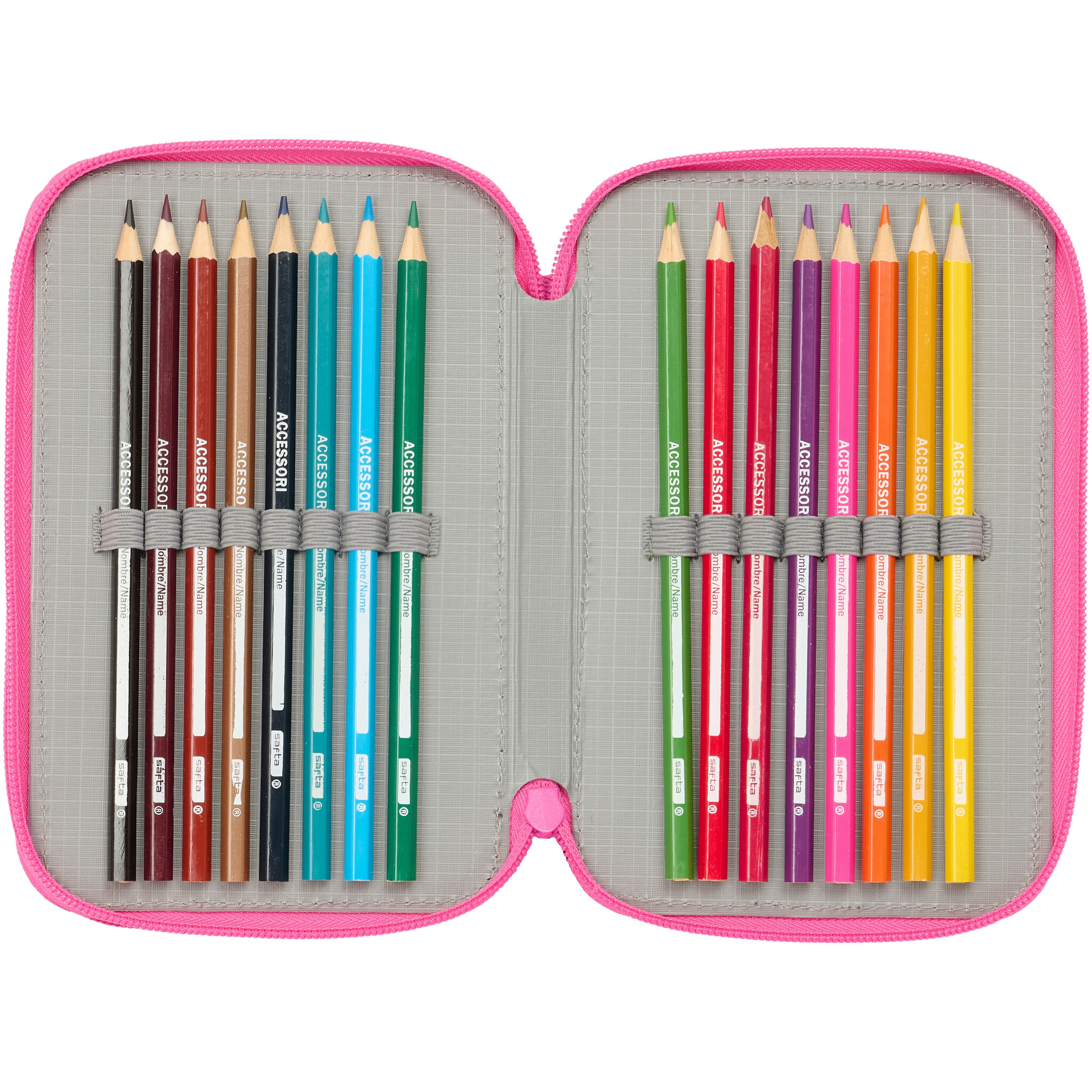 Superbe trousse Kuromi bien fournie ! Un véritable accroche-regard pour vos séances de dessin ou vos journées d'école. Cette jolie trousse regorge de fournitures de dessin et d'écriture. Tout ce dont vous avez besoin pour vos devoirs ou vos projets créatifs. L'image amusante de Kuromi, le personnage original de la série Sanrio, complète son look. La trousse comporte pas moins de trois compartiments zippés pour que tout soit bien rangé. Utilisez-la à l'école, à la maison ou en vacances (en avion ou en voiture). C'est aussi un cadeau idéal pour un anniversaire ou toute autre occasion spéciale.