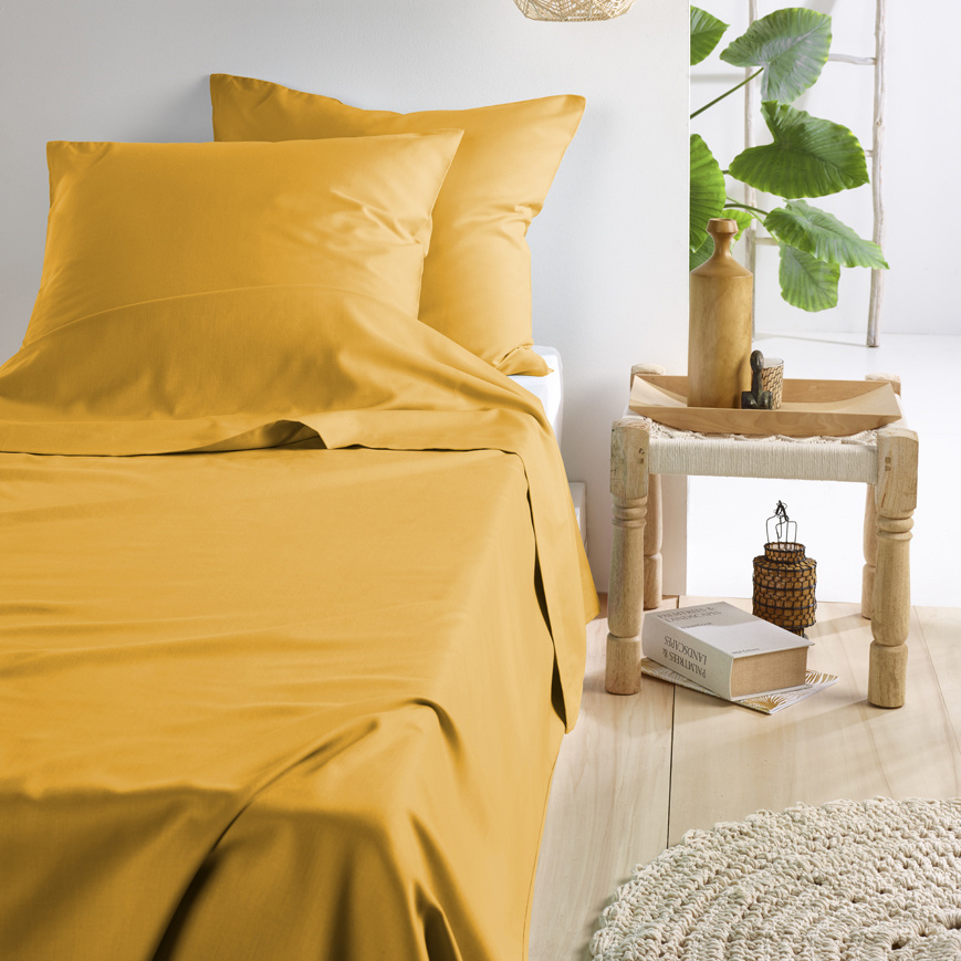 De Witte Lietaer Parure de lit Olivia - Double - 280 x 280 cm - Jaune - Coton satiné
