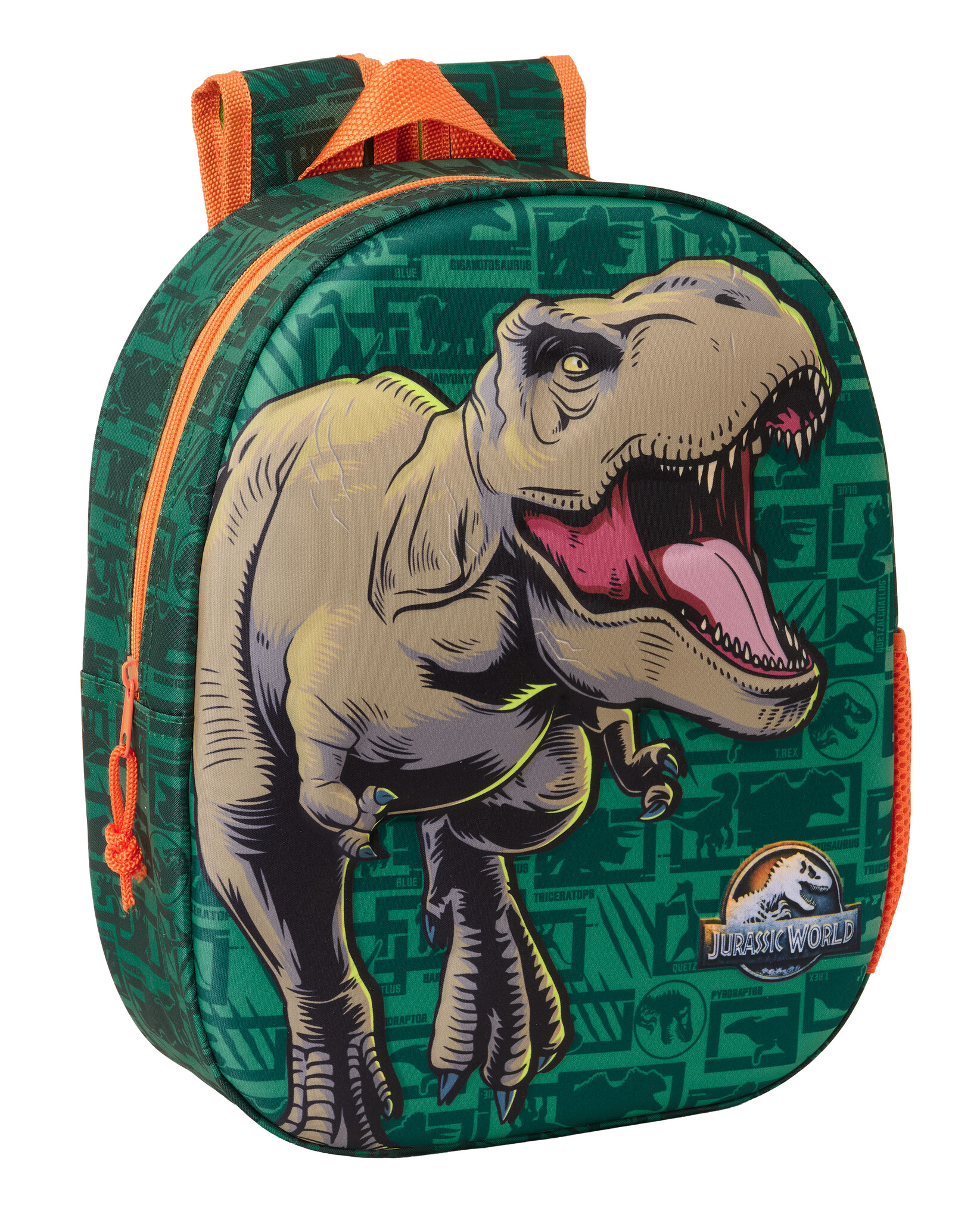 Ga op avontuur met deze stoere Jurassic World rugzak! De groene tas heeft een indrukwekkende 3D/relief afbeelding van een T-Rex op de voorkant, waardoor hij meteen opvalt en perfect is voor echte dinofans.