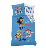 PAW Patrol Dekbedovertrek, Team PAW. Leuk eenpersoons katoenen dekbedovertrek van de voornaamste leden van Team PAW: Rubble, Marshall en natuurlijk Chase! Naast hard werken is het voor hun ook super belangrijk om fijn te kunnen spelen! Dit lichtblauwe dekbedovertrek is een fantastisch cadeau voor de PAW Patrol fan.