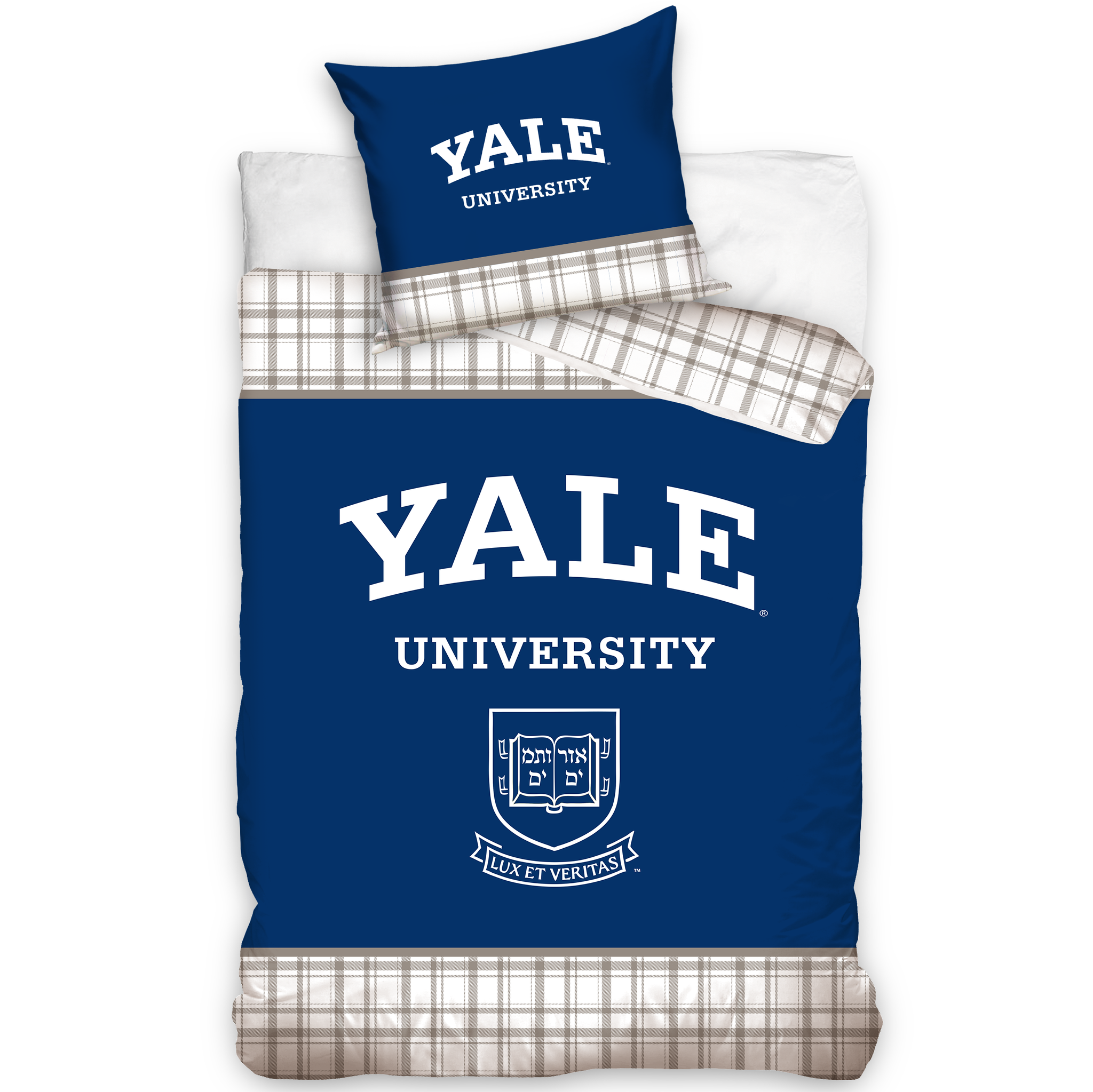 Yale Dekbedovertrek. Is je grootse wens om ooit aan de universiteit van Yale te kunnen studeren? Dan kan je nu vast beginnen met dit dekbedovertrek. Het katoenen overtrek bevat het logo van deze universiteit uit New Haven, op een blauwe achtergrond met een ruitjes dessin rand. Door het extra grote kussensloop heb je een geweldige blikvanger te pakken! Nu nog hard genoeg studeren om een echte Yalie te worden! Dromen kan altijd! Een geweldig cadeau idee voor een echte studiebol of voor een liefhebber van deze Amerikaanse Universiteit.