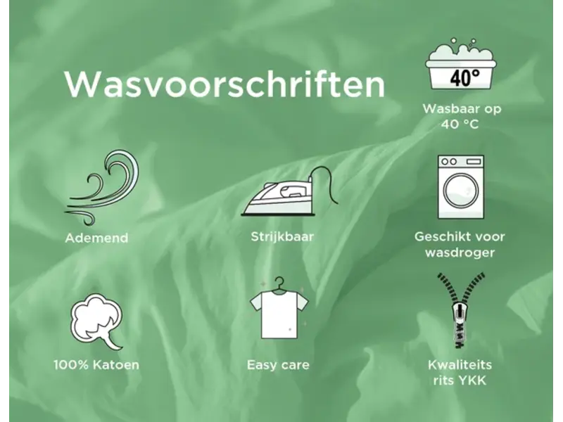 Wij raden aan om het overtrek binnenstebuiten te wassen om de duur van het dekbed te verlengen. Katoen kan gewassen worden op 40 graden en is geschikt voor de droger.