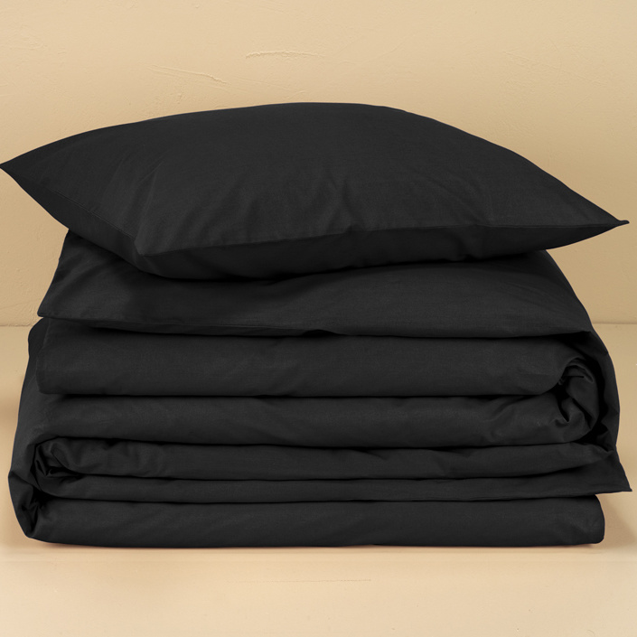 Moodit Dekbedovertrek, Basil Black. Een geweldig eenpersoons dekbedovertrek. Een unicolor overtrek, wat je terug naar de basis brengt. Dit beddengoed brengt zowel eenvoud als rust in de slaapkamer. Gemaakt van 100% katoen en reactief geverfd. Wat inhoudt dat deze set geschikt is voor intensief gebruik en een uitstekend kleurbehoud heeft. Maximum bescherming voor licht en wassen. Mix and match met andere kleuren uit deze serie of de Odil serie en zet de sfeer naar jouw hand, altijd en overal!