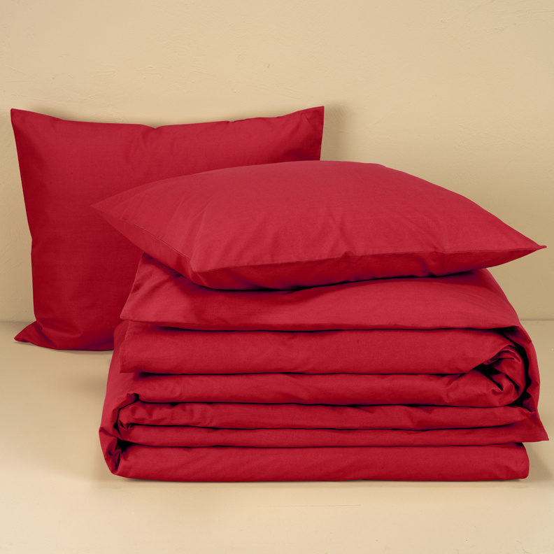 Moodit Dekbedovertrek, Basil Deep Red. Een geweldig dekbedovertrek in hotelmaat. Een unicolor overtrek, wat je terug naar de basis brengt. Dit beddengoed brengt zowel eenvoud als rust in de slaapkamer. Gemaakt van 100% katoen en reactief geverfd. Wat inhoudt dat deze set geschikt is voor intensief gebruik en een uitstekend kleurbehoud heeft. Maximum bescherming voor licht en wassen. Mix and match met andere kleuren uit deze serie of de Odil serie en zet de sfeer naar jouw hand, altijd en overal!