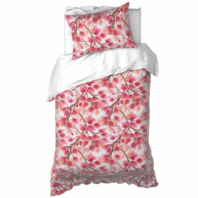 Dit dekbedovertrek Ines uit de satijncollectie van De Witte Lietaer brengt een verfijnde zachtheid en poëtische elegantie in de slaapkamer. Het romantische dessin van bloesemtakken in zachte roze tinten vormt een harmonieus contrast met de frisse, lichte achtergrond en creëert een serene en luxueuze uitstraling. Het ontwerp voelt luchtig en dromerig aan, perfect voor wie houdt van subtiele schoonheid met een stijlvolle twist.