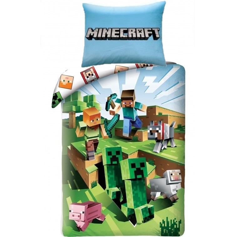 Minecraft Dekbedovertrek Outside. Kleurrijk dekbedovertrek van jouw favoriete spel Minecraft. Help jij mee deze Creepers te verslaan? Het dekbedovertrek is gemaakt van 100% katoen en wordt geleverd met een extra groot kussensloop. De achterkant heeft een andere bedrukking, wat een leuke afwisseling kan geven bij het opmaken van het bed. Een geweldig cadeau voor elke fan van Minecraft of computergames.
